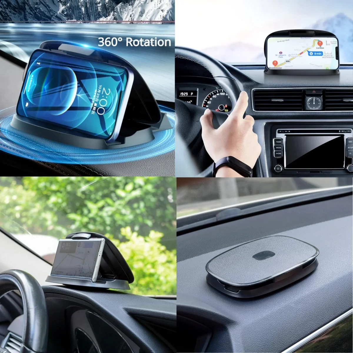 Comprar Soporte para teléfono de coche 360 ° Soporte antideslizante para teléfono inteligente con GPS para tablero de rotación, soporte de 4 a 6 pulgadas con número de estacionamiento