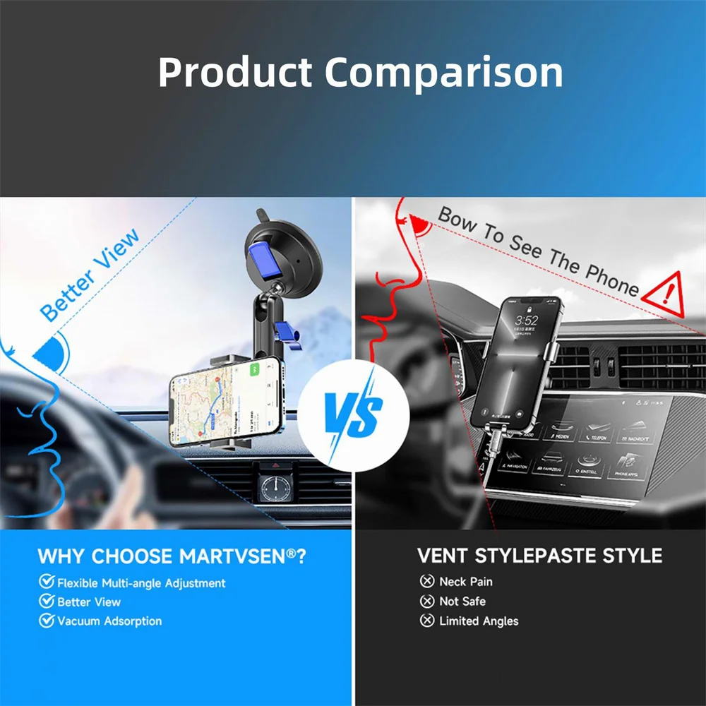 El soporte para teléfono cuenta con una potente ventosa que utiliza adsorción al vacío, eliminando la necesidad de adhesivos.