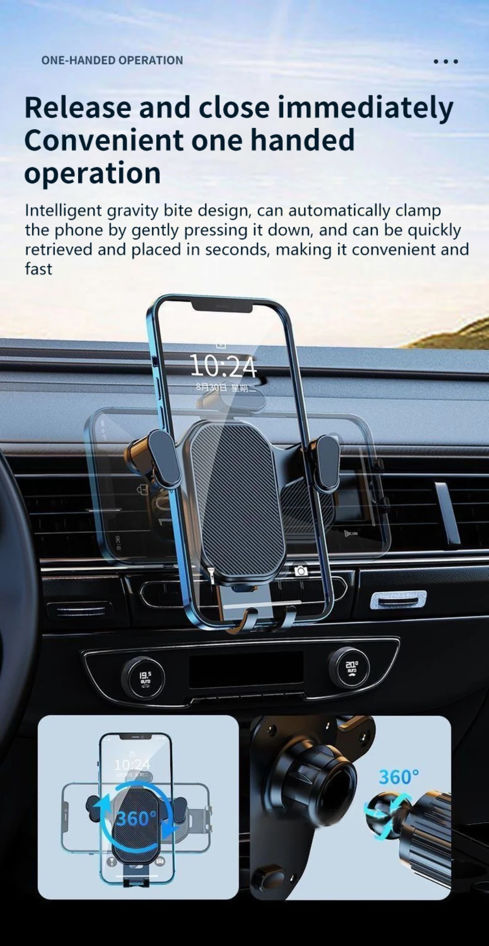 Comprar Soporte para teléfono de coche Gravit con gancho, Clip para salida de aire de coche, sin caída, soporte para teléfono inteligente, soporte GPS para móvil de 4,7-6,7 pulgadas, 1 ~ 5 uds.