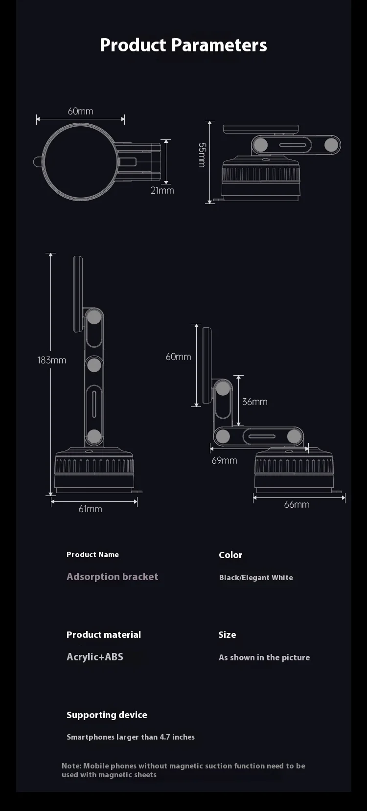 Soporte para teléfono de coche para iPhone 16 Pro Max 15 14 13 12 Plus 16E 360 ° Soporte Universal magnético de rotación para coche/espejo/superficie lisa
