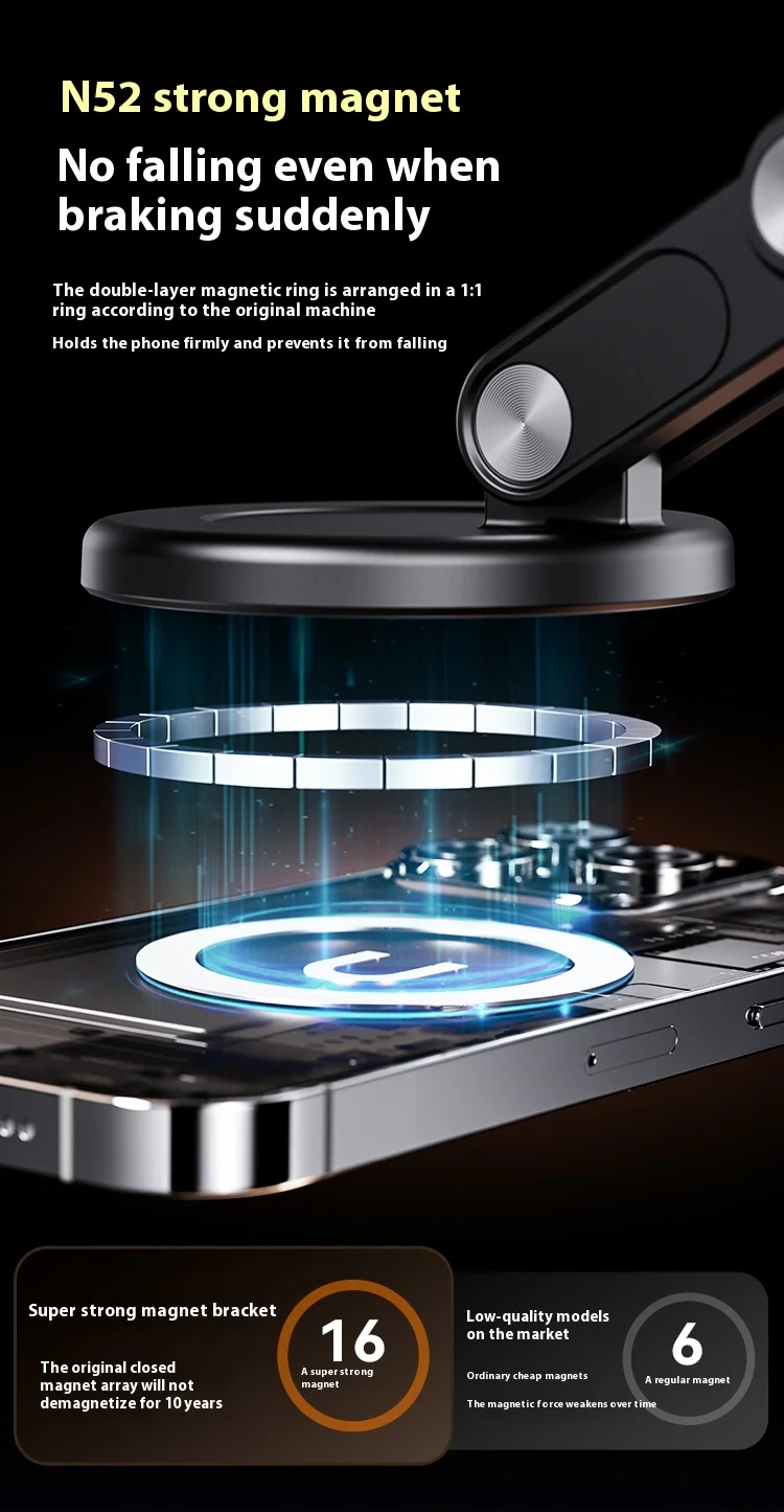 Soporte de teléfono para coche para iPhone 16 Pro Max 15 14 13 12 Plus 16E 360 ° Soporte universal magnético de rotación para coche/espejo/superficie lisa