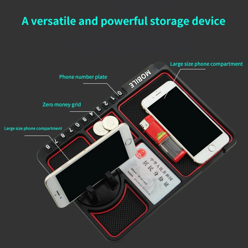 Comprar Soporte de teléfono para coche con pantalla de número de estacionamiento, alfombrilla de silicona antideslizante para vehículos, organizadores de almacenamiento, soporte para teléfono inteligente