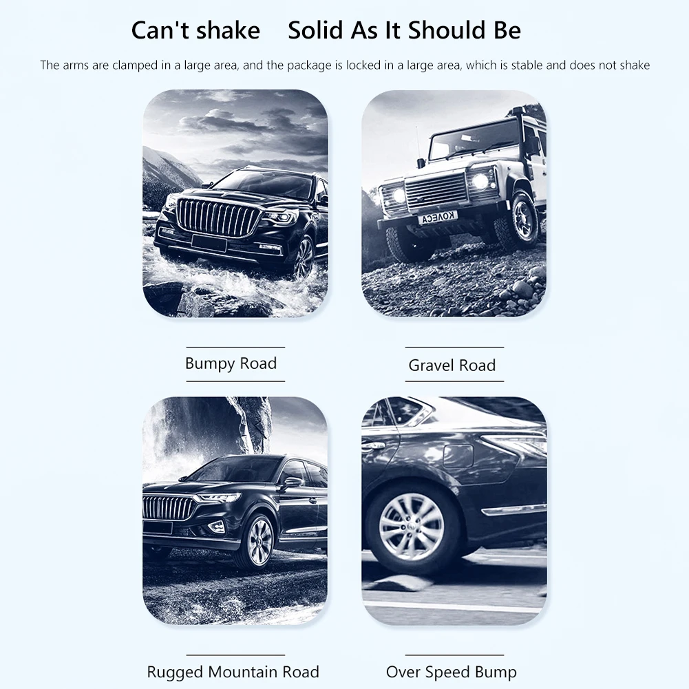 2. El temblor no se caerá y la estabilidad no se sacudirá. Brazo de clip de silicona engrosada, clip de cocodrilo antideslizante fijo multiángulo, estable y sin caídas; los brazos dobles están bloqueados en un área grande de la bolsa, sin temblores, sin ruido anormal en baches (secciones de carretera con baches, secciones de arena y grava, carreteras de montaña escarpadas y badenes)