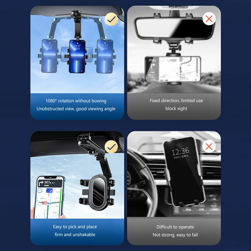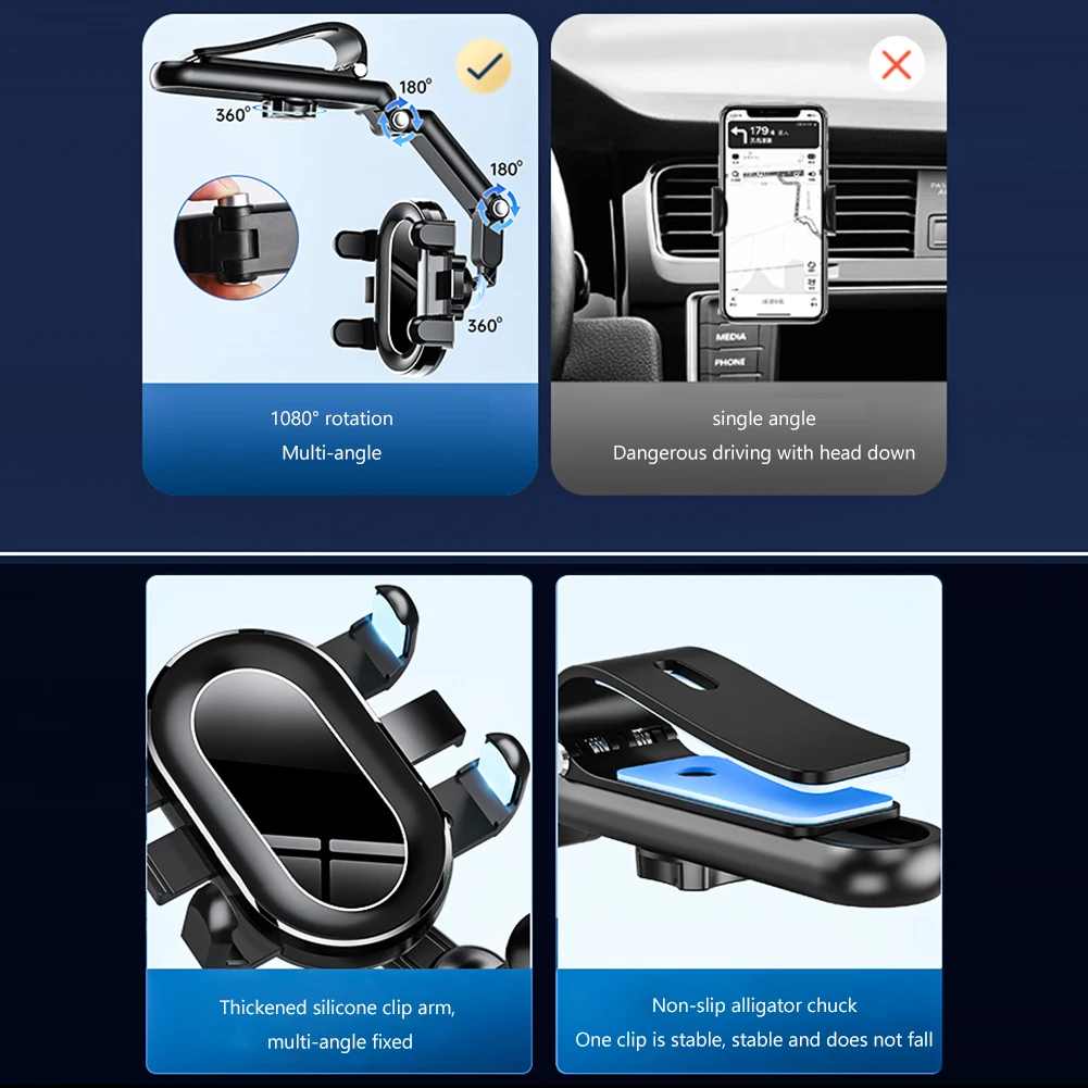 Clip de rotación 1080 para coche, parasol, espejo retrovisor, soporte para teléfono móvil, soporte Universal para teléfono móvil GPS, soporte para teléfono de 4-7 pulgadas