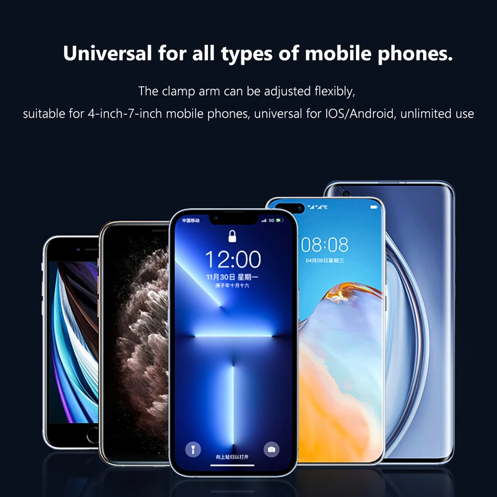 5. En general, todo tipo de teléfonos móviles. El brazo de la abrazadera se puede ajustar de manera flexible, adecuado para teléfonos móviles de 4 a 7 pulgadas, universal para Apple y Android, ilimitado