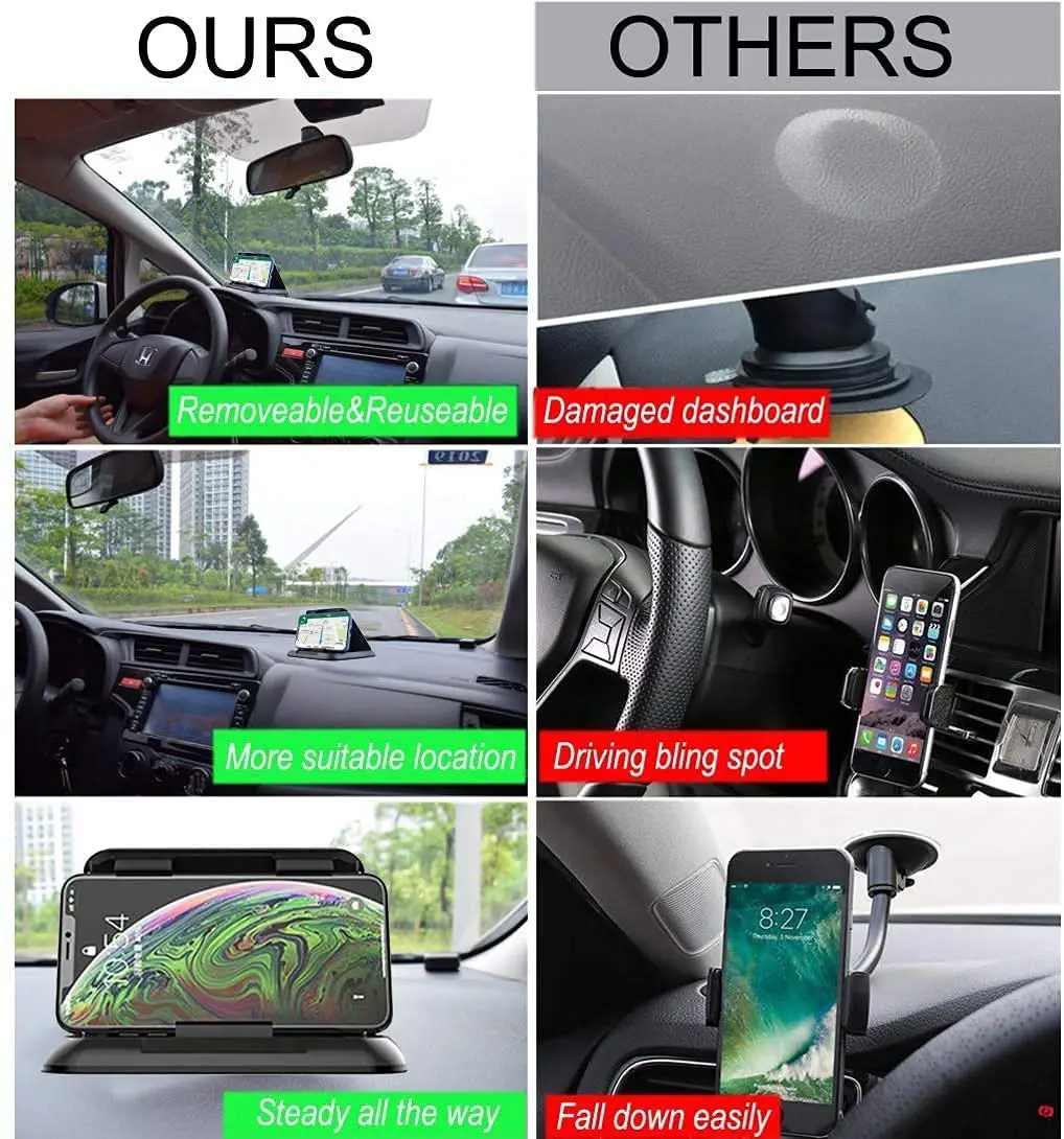 R: Diseño de ventosa inferior, puede soportar una tableta o un teléfono de manera estable, diseño de protección solar protege el teléfono, reduce el daño causado por la luz solar.