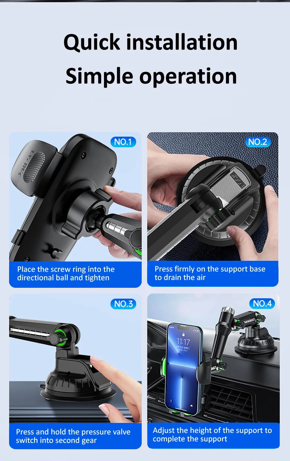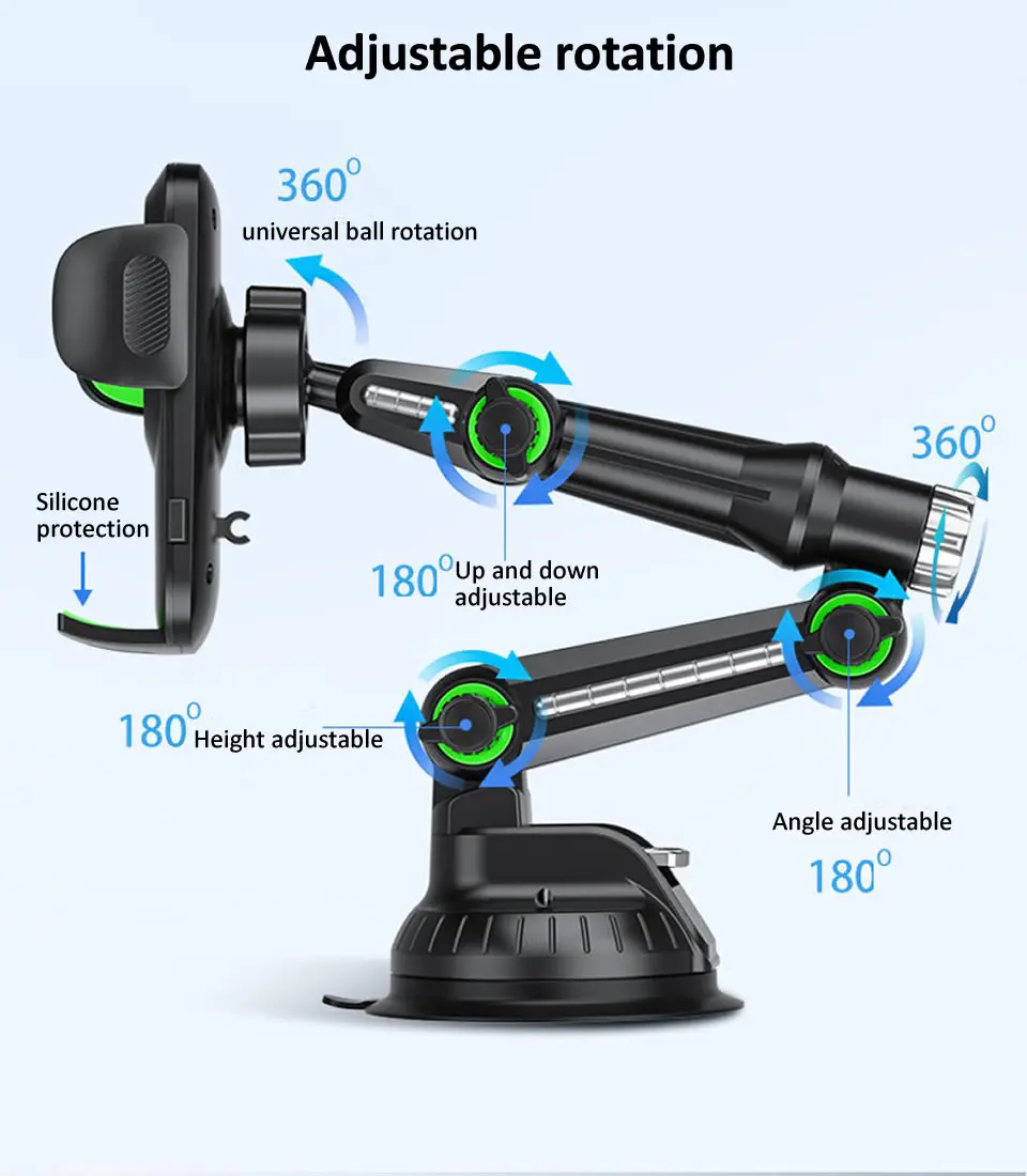 Comprar Soporte de teléfono para coche con succión de 360 °, consola central, montaje de ventosa para teléfono inteligente, soporte Universal para parabrisas, soporte de brazo largo ajustable