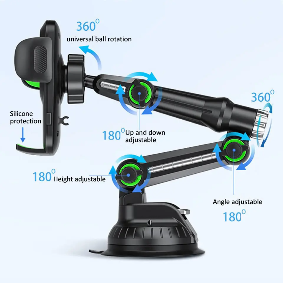 Comprar Soporte de teléfono para coche con succión de 360 °, consola central, montaje de ventosa para teléfono inteligente, soporte Universal para parabrisas, soporte de brazo largo ajustable