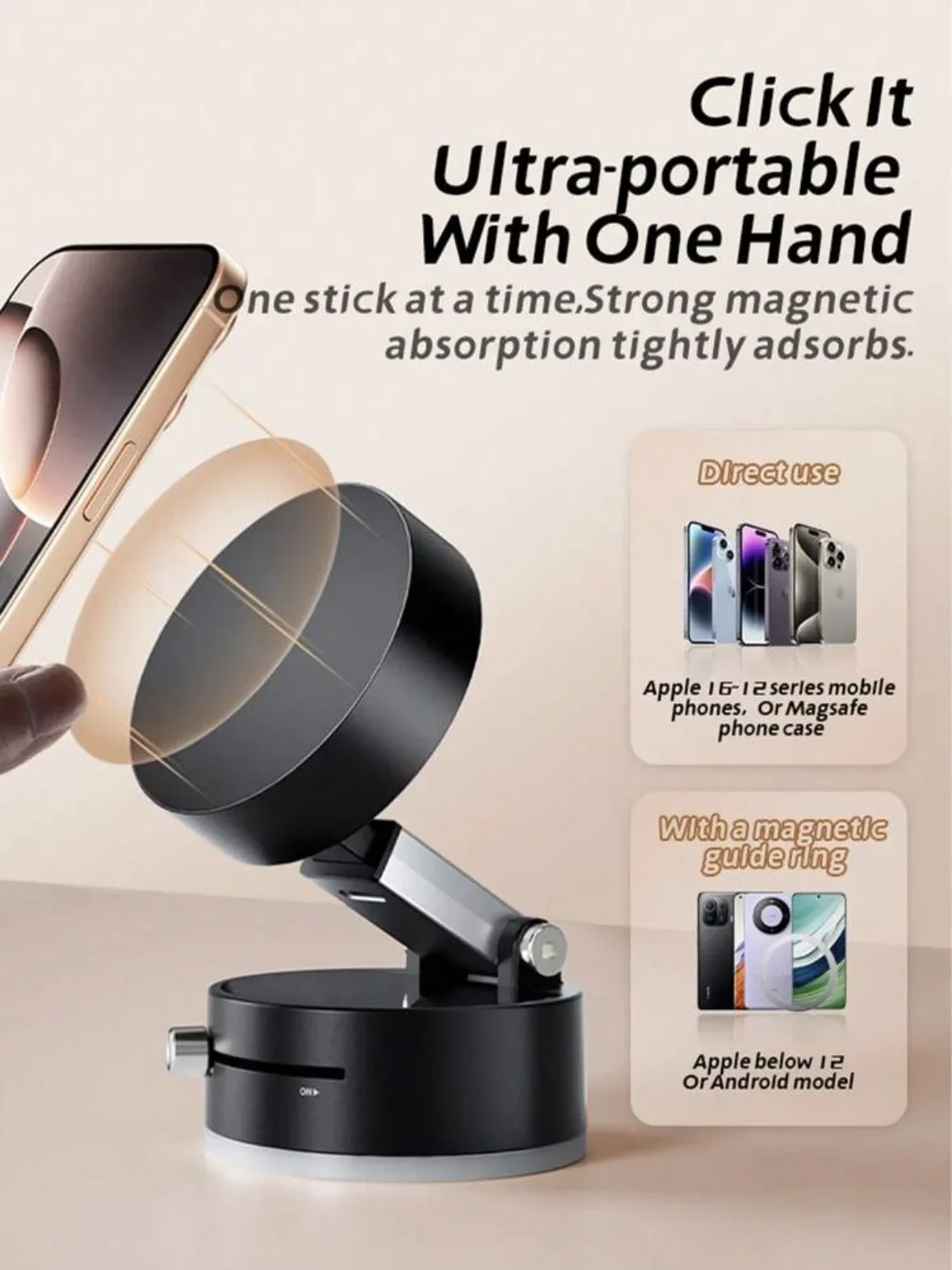 Soporte de teléfono para coche con succión magnética al vacío reutilizable para Apple iPhone 12 13 14 15 16 Pro Max Galaxy S24 Pixel Huawei Honor Xiaomi