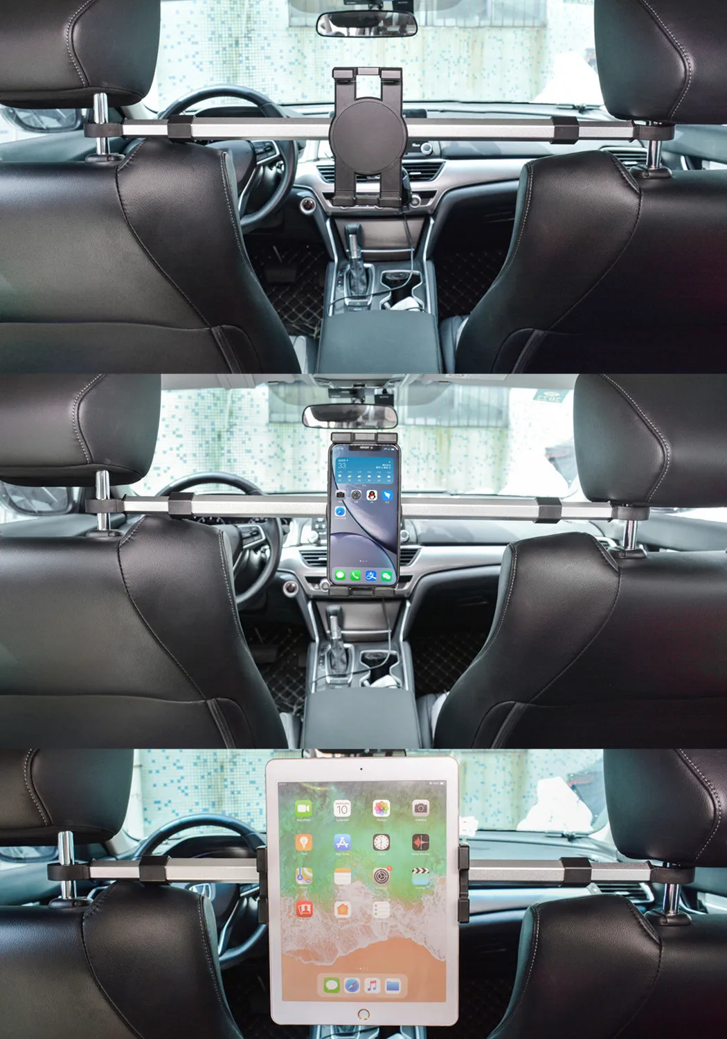 Soporte para tableta en automóvil Rotación de 360 grados Ángulo ajustable Coche entre asiento trasero Reposacabezas Abrazadera de montaje para tableta para iPad Pro 13 12,9 11 10,5 9,7 iPad Air, Samsung Galaxy Tab S7 Plus Fe, mediaPad Pro 11 13 '', todos los modelos de iPhone, etc.
