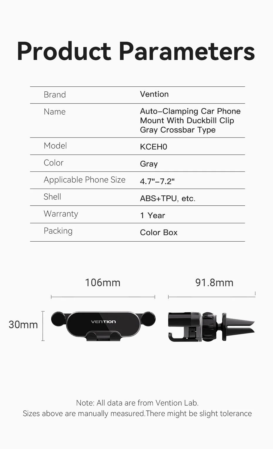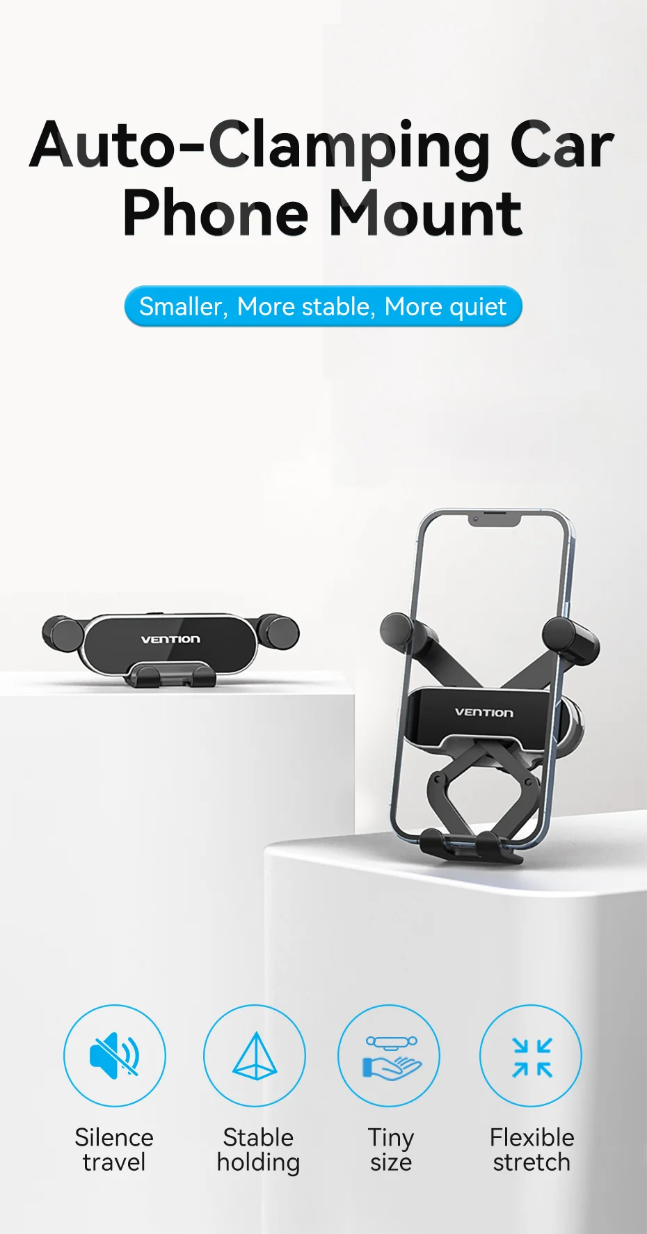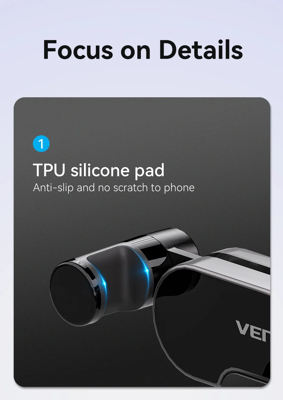 Características: Soporte invisible de conexión por gravedad, fijo multipunto, sin sacudidas; Forma de una palabra, tamaño compacto, no bloquea el orificio del aire acondicionado; Reserve el orificio del cable de carga, no bloquee el enchufe; Silicona de abrazadera trasera, no daña el deflector de salida de aire;
