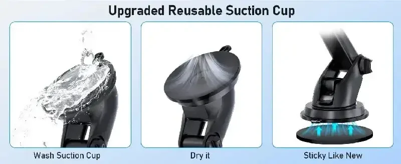 La potente ventosa se fija firmemente al parabrisas o al tablero, asegurando que su teléfono permanezca en su lugar durante paseos con baches.