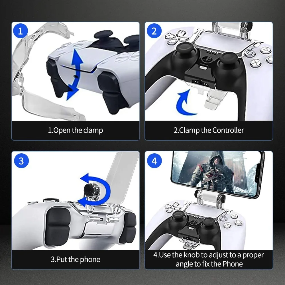 🎮【Compatibilidad】-Este clip de soporte para el teléfono del controlador está especialmente diseñado para PS5 y permite una instalación fácil y flexible. Puede conectar fácilmente un controlador de juego PS5 y un teléfono móvil, lo que le brinda mejores efectos de juego y una experiencia de juego más cómoda.