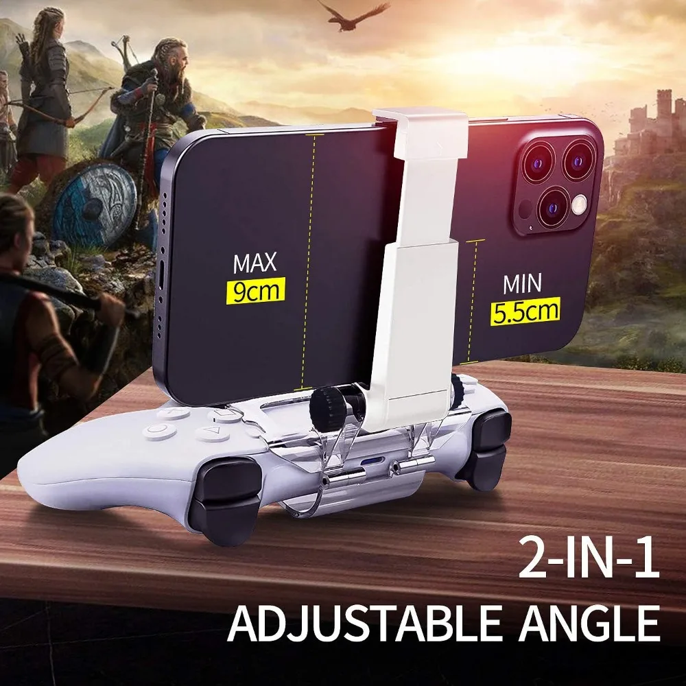 🎮【Diseño de clip retráctil】 Este soporte para controlador de teléfono inteligente accesorio PS5 se adapta a la mayoría de los teléfonos móviles. Este soporte para teléfono es compatible con teléfonos de hasta 6,5 pulgadas (ancho inferior a 9 cm).