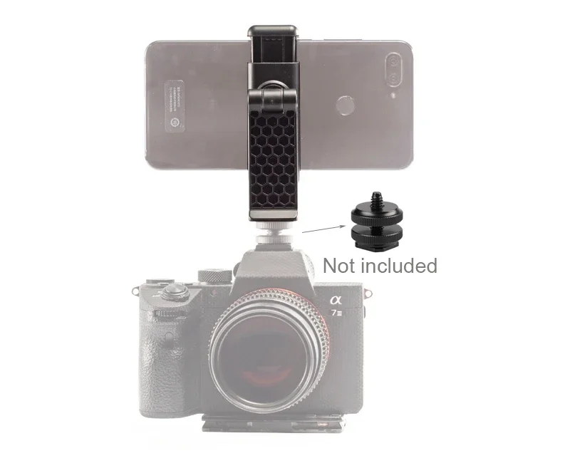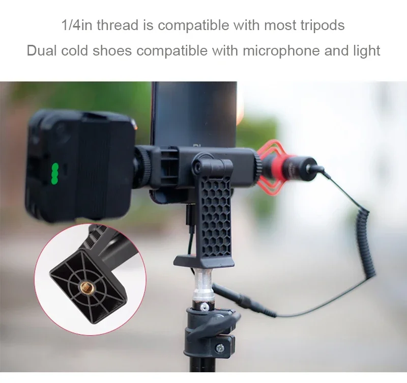 Clip para teléfono móvil Roreta con doble zapata fría 1/4 tornillo soporte para teléfono inteligente montaje en trípode adaptador de trípode de escritorio para Samsung iPhone