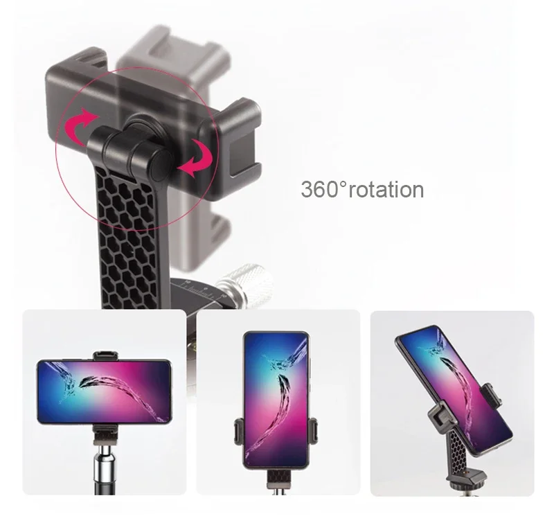 Comprar Soporte de teléfono giratorio de 360 °, trípode con zapata fría para micrófono, Clip de teléfono ligero para iPhone 13 Pro Max