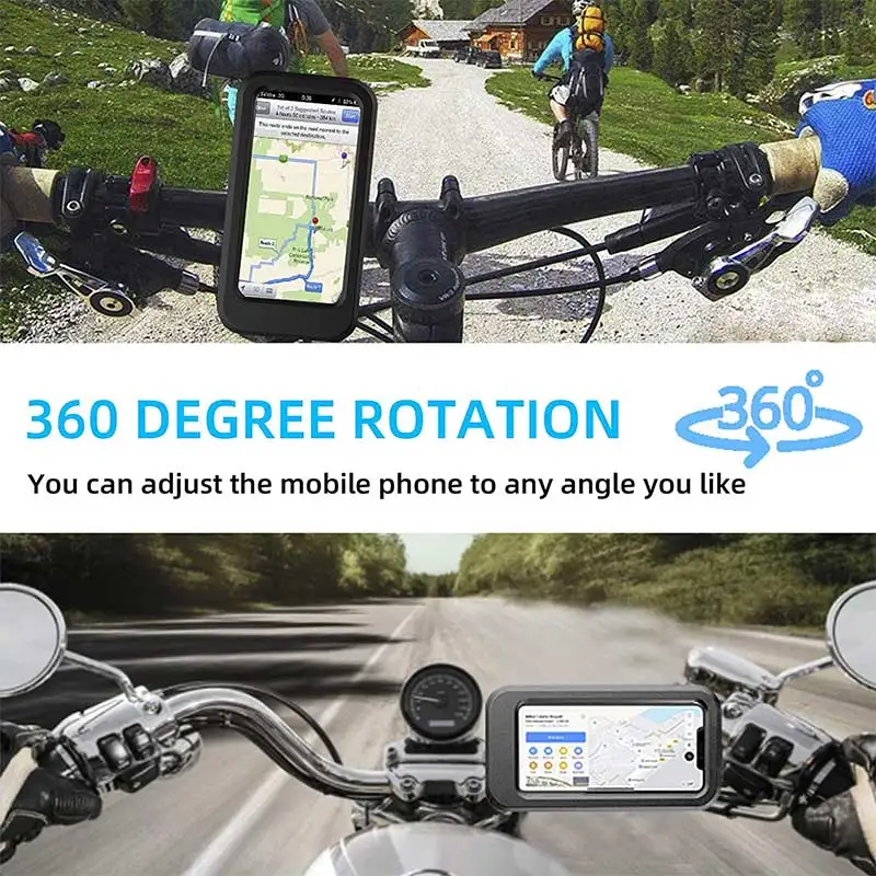【Soporte de teléfono de bicicleta de rotación ajustable de 360 ° 】El soporte de teléfono ajustable y el conector del manillar están conectados por una junta universal esférica, hace que su teléfono gire 360 ° en cualquier dirección. Puede ajustar el teléfono a cualquier ángulo que desee, adaptando perfectamente su ángulo de visión.