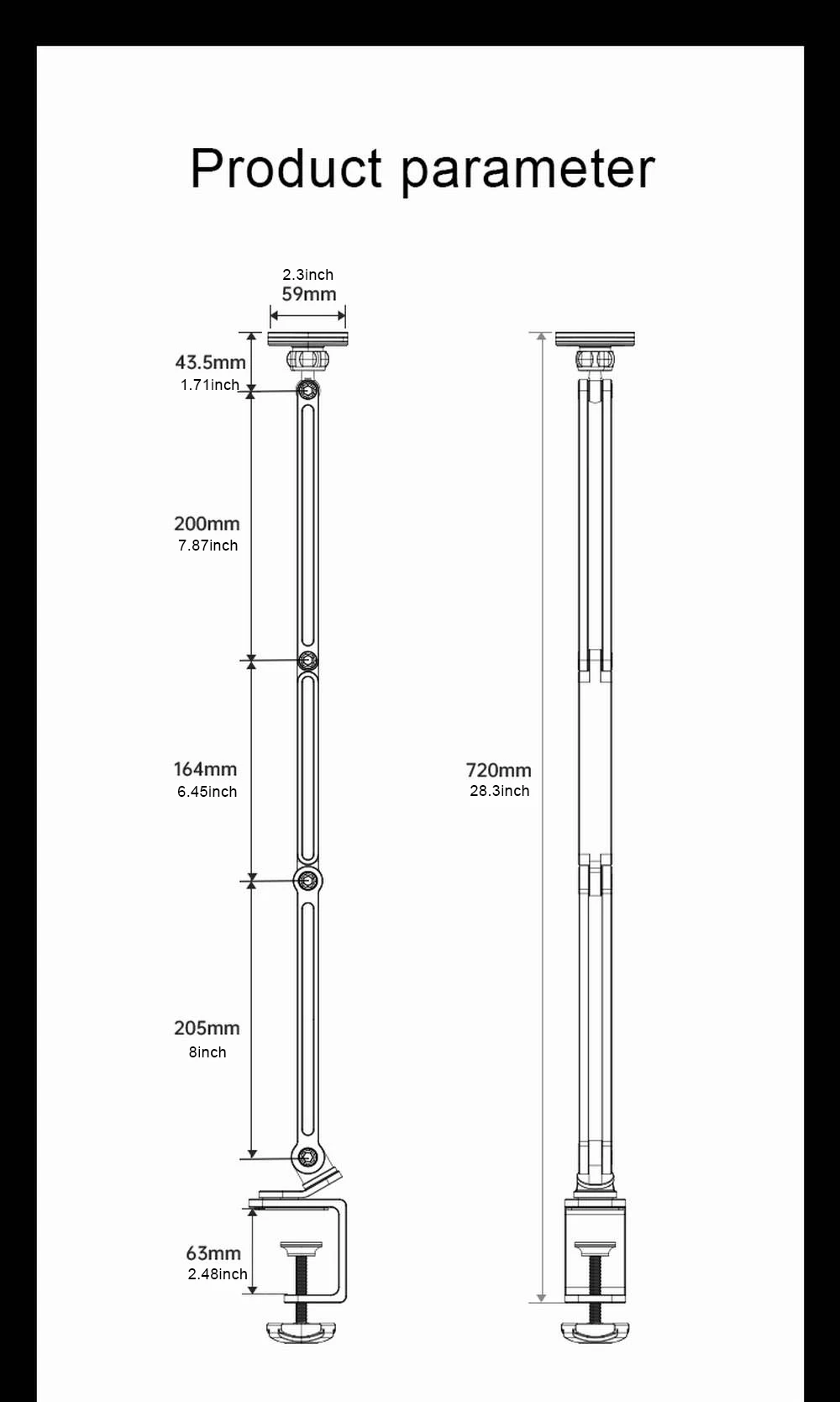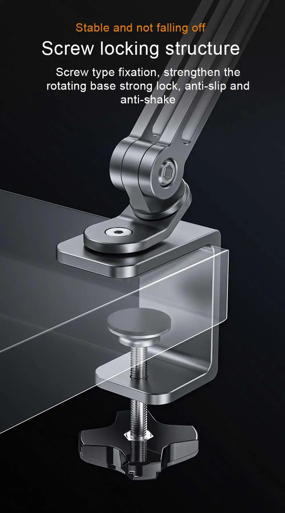 Abrazadera de escritorio segura: la abrazadera de escritorio soporta un máximo de 2 pulgadas o más delgada, cuando necesita ajustar la fuerza de las articulaciones, hágalas más apretadas, más sueltas o bloqueadas, una llave allen magnéticamente incorporada en la base de la abrazadera, siempre viene en mano -y y no ir a ninguna parte.