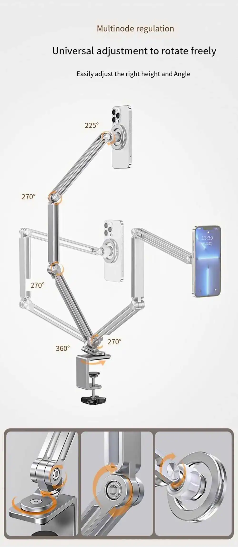 Calidad de construcción premium: fabricado con aleación de aluminio de alta calidad con una superficie anodizada, nuestro soporte para teléfono no solo proporciona una apariencia elegante y sofisticada, sino que también ofrece durabilidad y estabilidad.La construcción robusta garantiza que su teléfono permanezca seguro en su lugar sin tambalearse ni sacudirse.