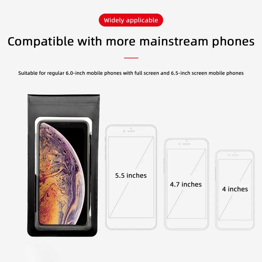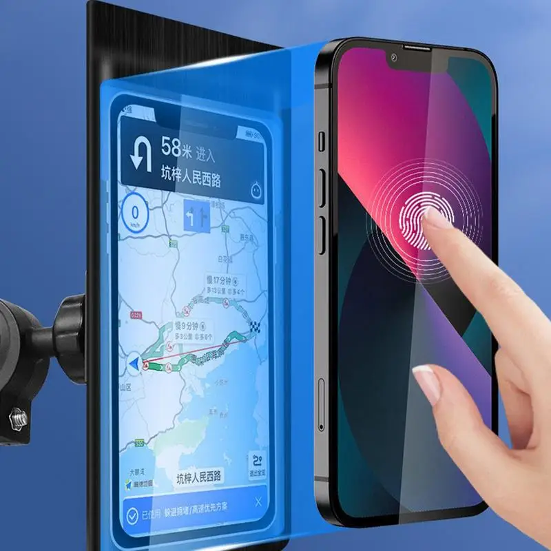 3. Pantalla táctil sensible: IP67 construida con funda impermeable, ¡la pantalla táctil aún funciona perfectamente a través de la funda del teléfono de la motocicleta! La pantalla táctil altamente sensible de este soporte de teléfono impermeable para bicicleta es compatible con Face ID/Touch.