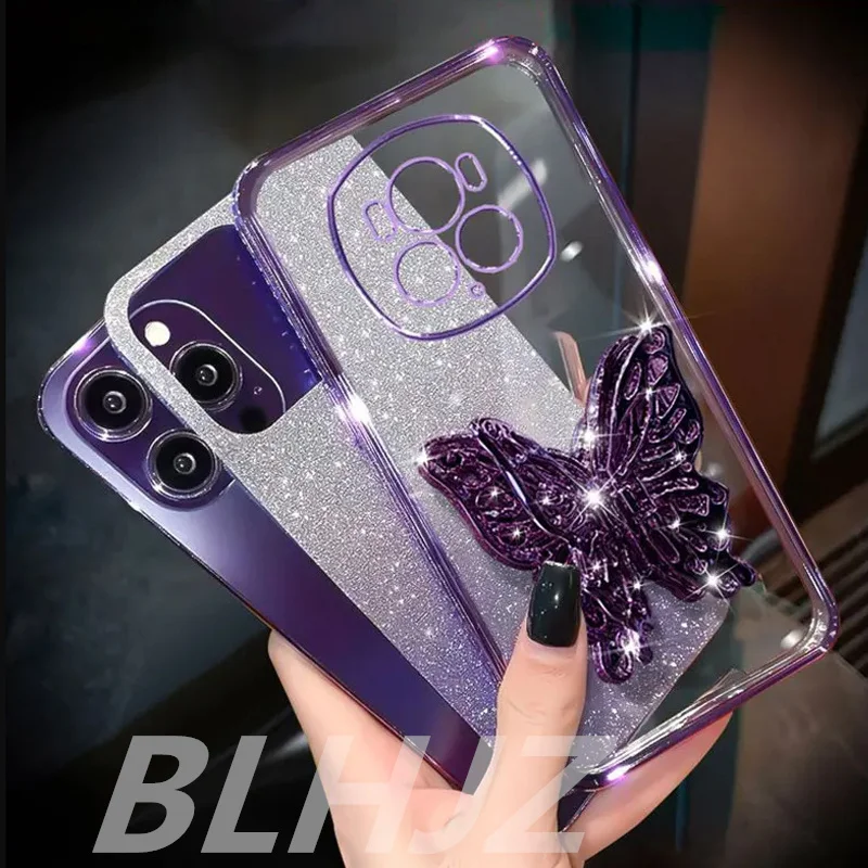 Comprar Soporte de teléfono de mariposa 3D, pulsera de cuentas, funda chapada con purpurina para Realme C67 C65 C63 C61 C53 C51 C55 C30 C21 C15 C25, funda con soporte