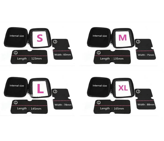 Si tienes alguna pregunta sobre el tamaño,por favor contáctenos al comprar S: Para dimensiones internas de aproximadamente : ( 65 x 125 mm) M: Para dimensiones internas de aproximadamente : ( 75 x 135 mm) L: Para dimensiones internas de aproximadamente : (83 x 150 mm) XL: Para dimensiones internas de aproximadamente : ( 90 x 175 mm)