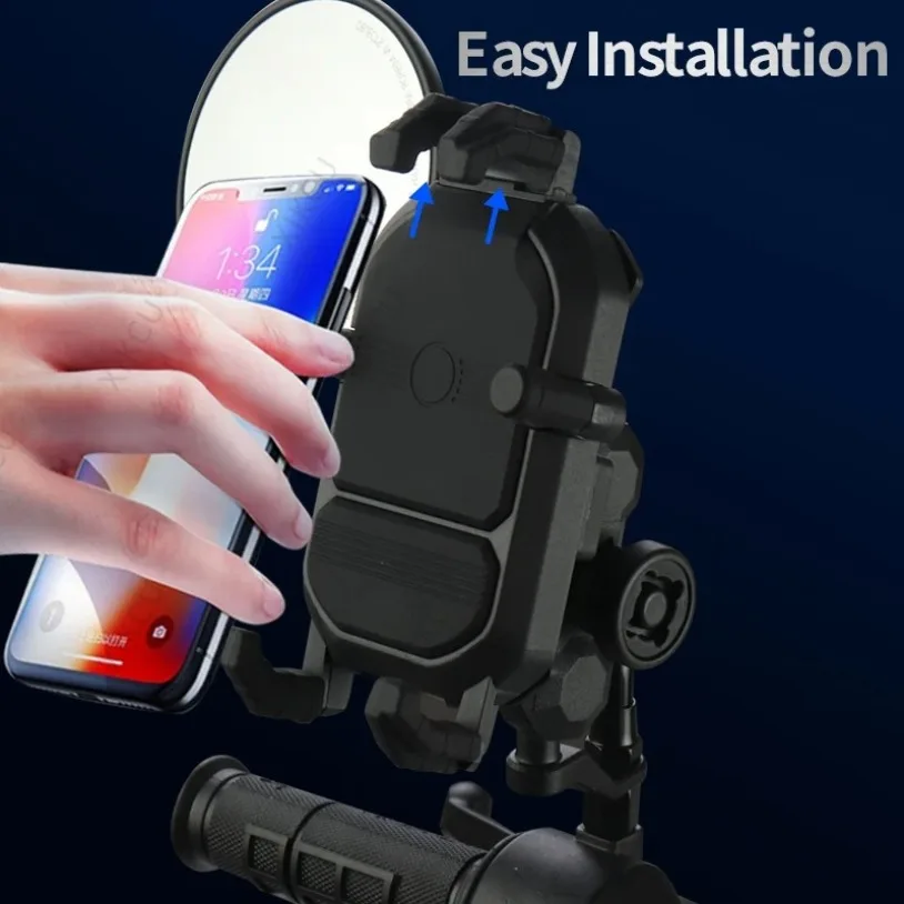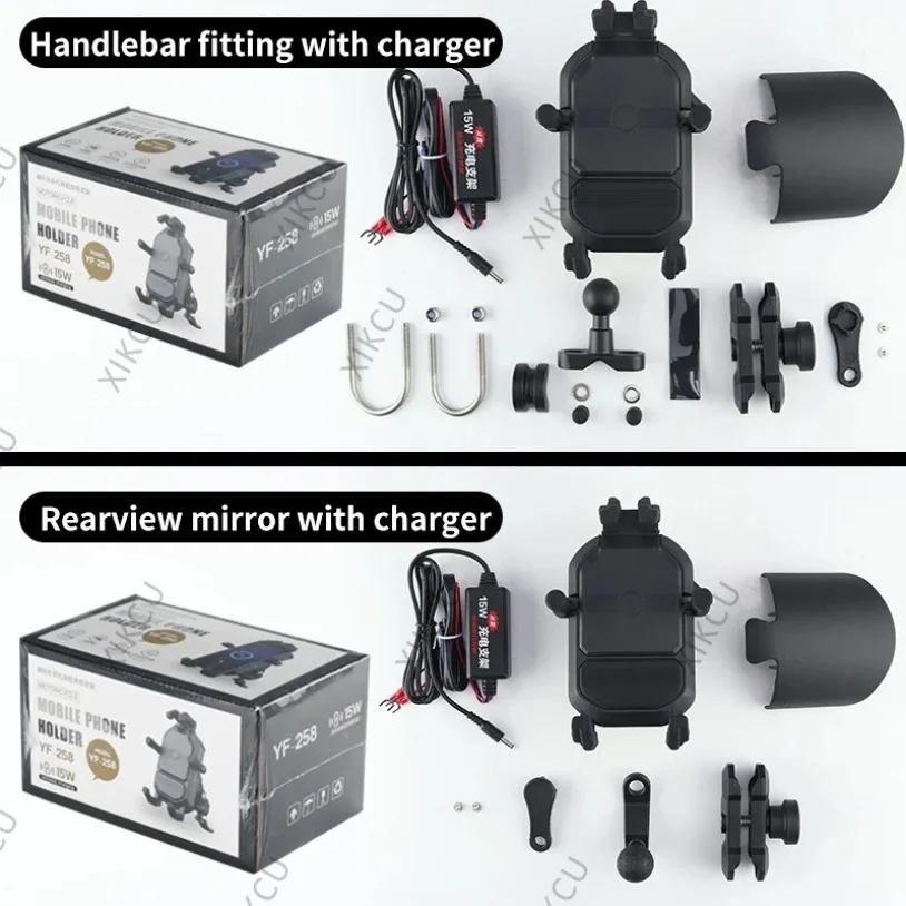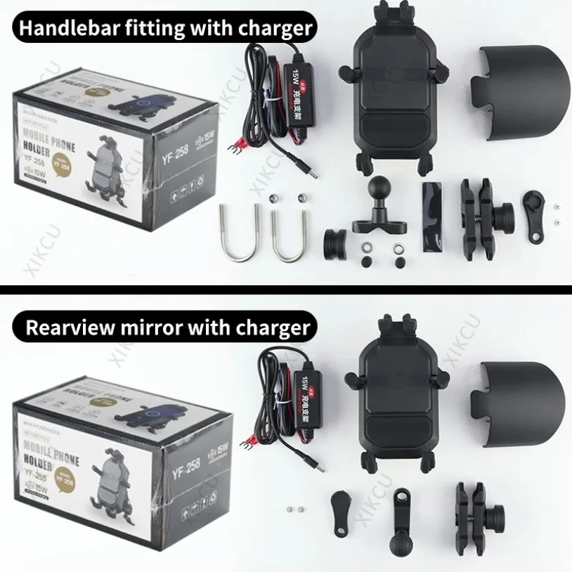 Comprar Soporte de teléfono para motocicleta, bloqueo de luz a prueba de golpes, cargador inalámbrico, espejo de manillar para teléfono inteligente, soporte para bicicleta y motocicleta, 15W