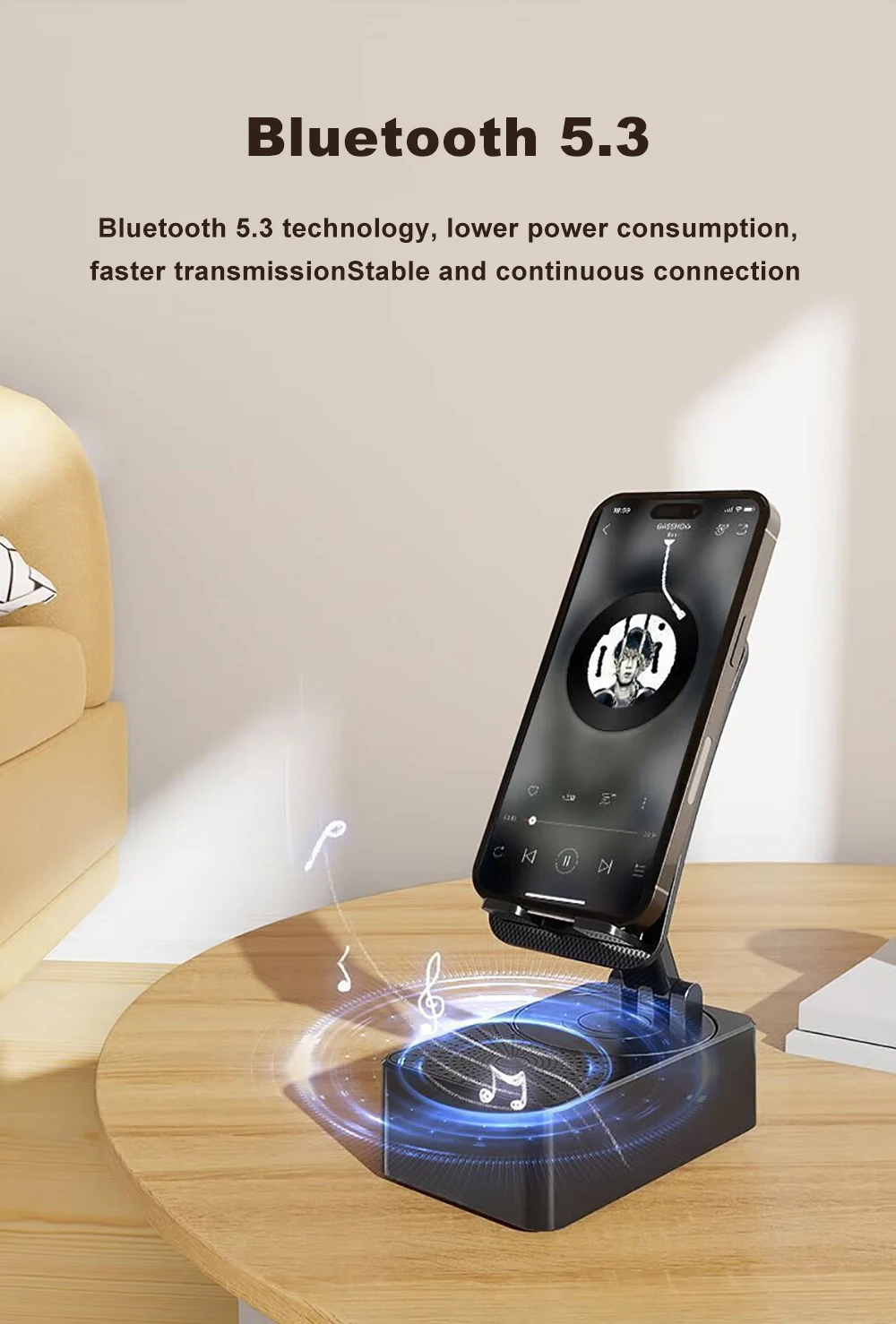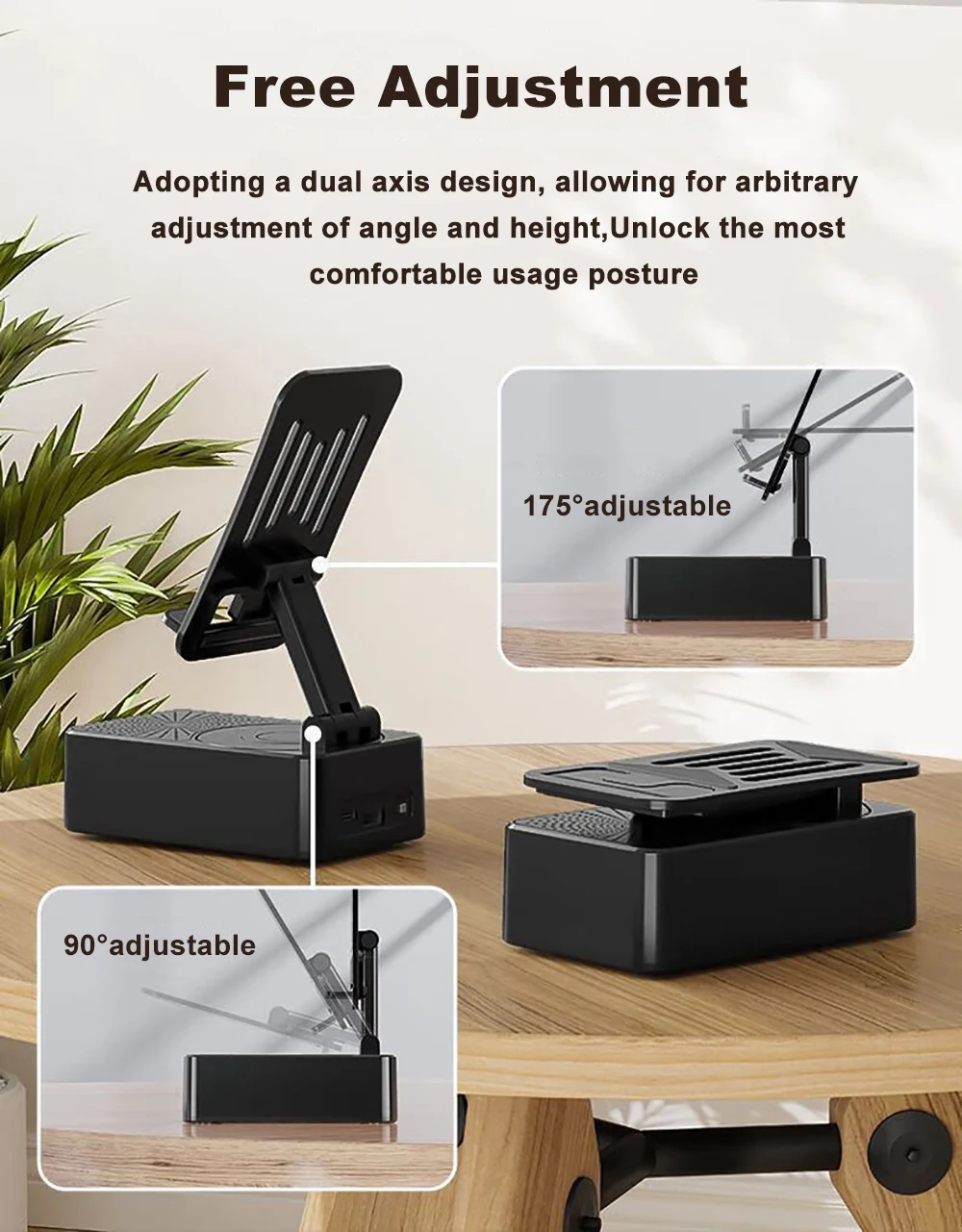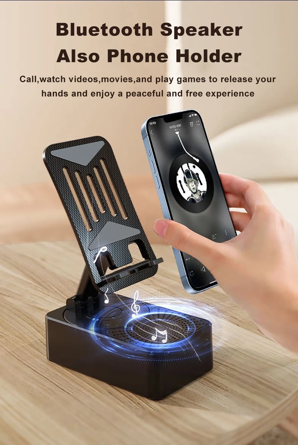 Comprar Soporte para teléfono móvil 3 en 1, Altavoz Bluetooth 5,3, carga de teléfono, portátil, ajustable, escritorio, soporte para tableta y teléfono perezoso en vivo