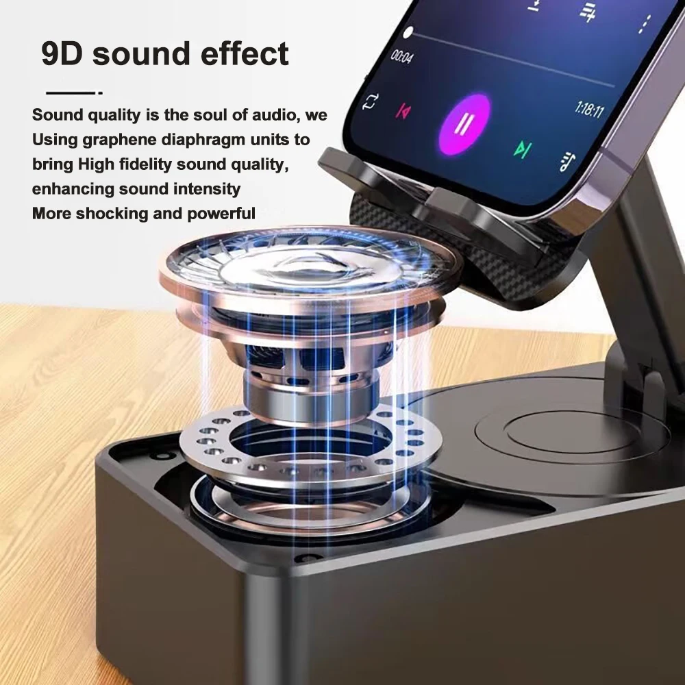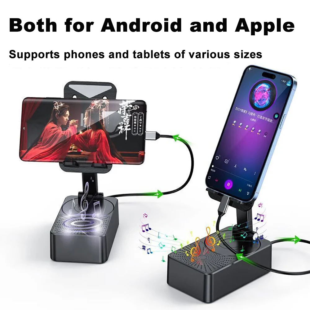 Comprar Soporte para teléfono móvil 3 en 1, Altavoz Bluetooth 5,3, carga de teléfono, portátil, ajustable, escritorio, soporte para tableta y teléfono perezoso en vivo