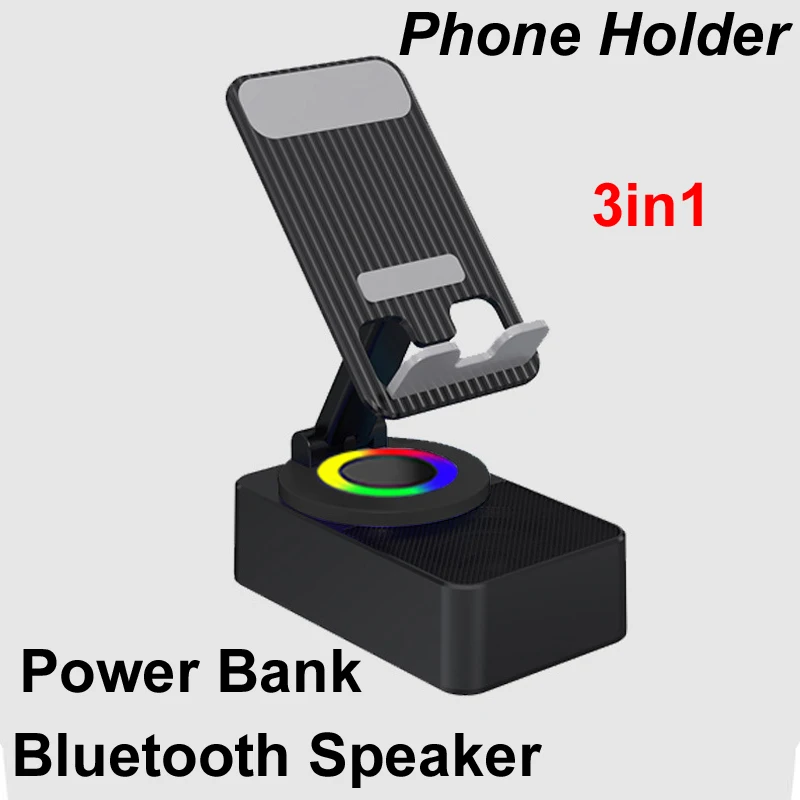 Soporte para teléfono móvil 3 en 1, soporte + banco de energía de Audio + altavoz inalámbrico Bluetooth, ajustable, giratorio, escritorio, soporte para tableta perezosa en vivo