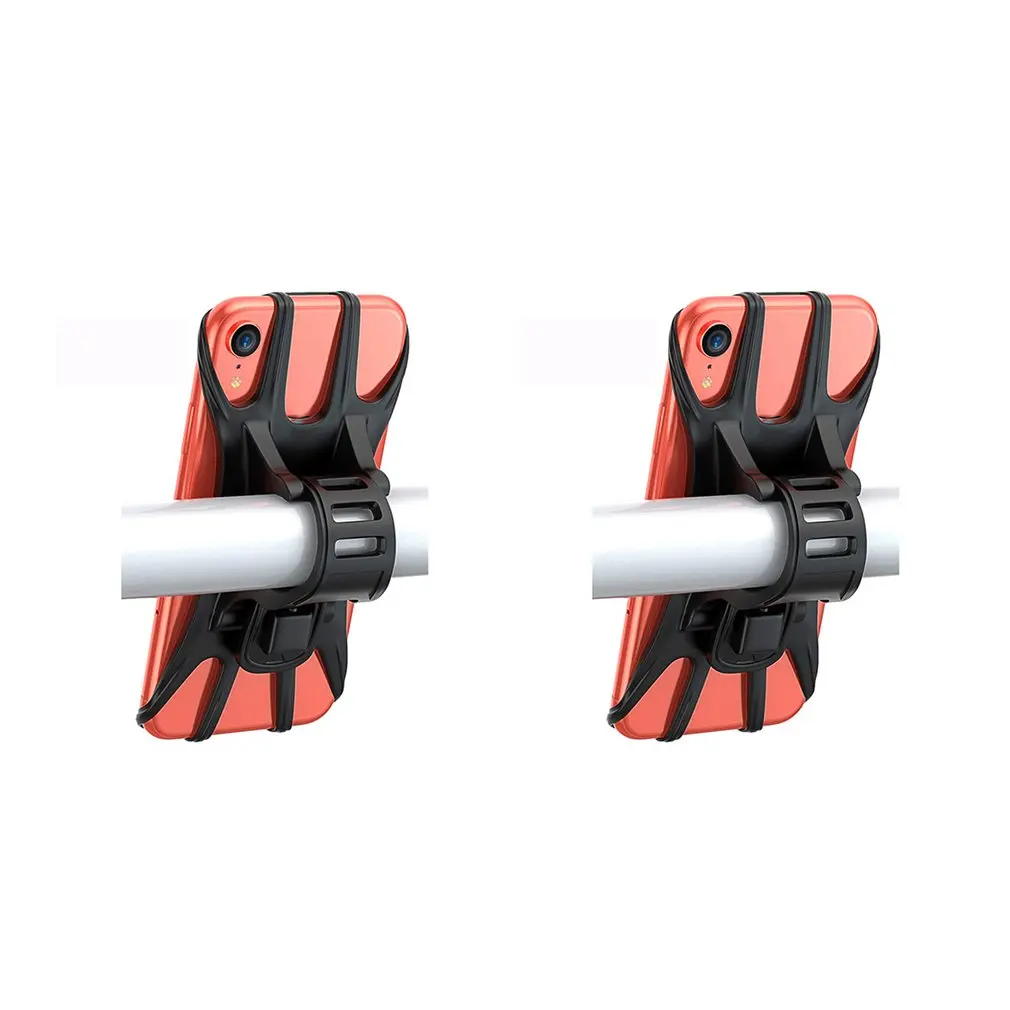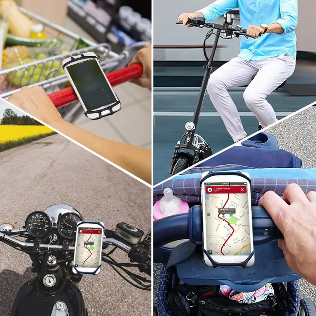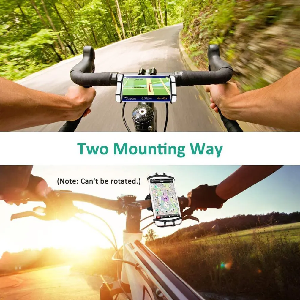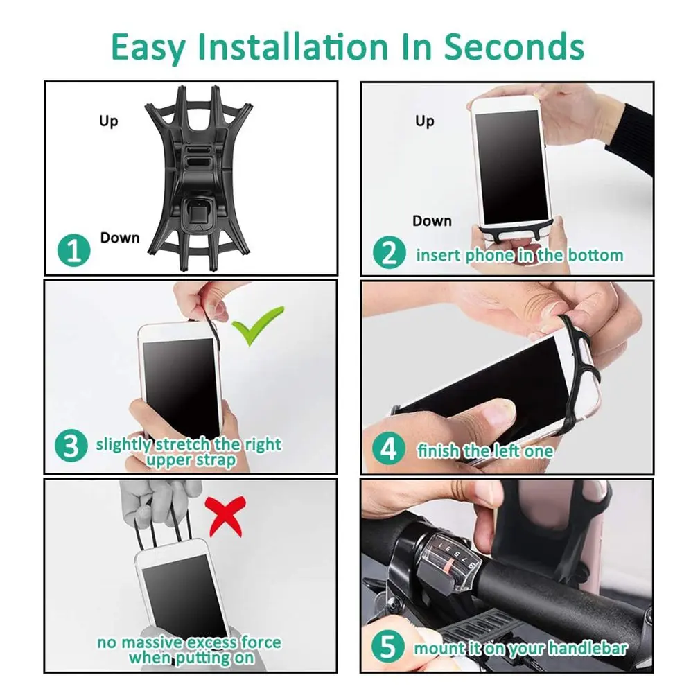Hecho de material de silicona de primera calidad, el clip flexible del soporte del teléfono absorbe y evita arañazos en el teléfono. Las bandas elásticas de silicona sujetan firmemente su teléfono a la bicicleta, incluso en una carretera con baches.