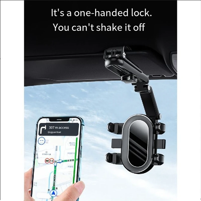 [No más mirar hacia abajo en la navegación] El soporte del teléfono del automóvil está montado en el espejo retrovisor del automóvil y se nivela con él para mantener la vista en la carretera. No es necesario mirar hacia abajo en la navegación, y obtenga una experiencia de usuario más cómoda y segura usando este soporte para teléfono celular.