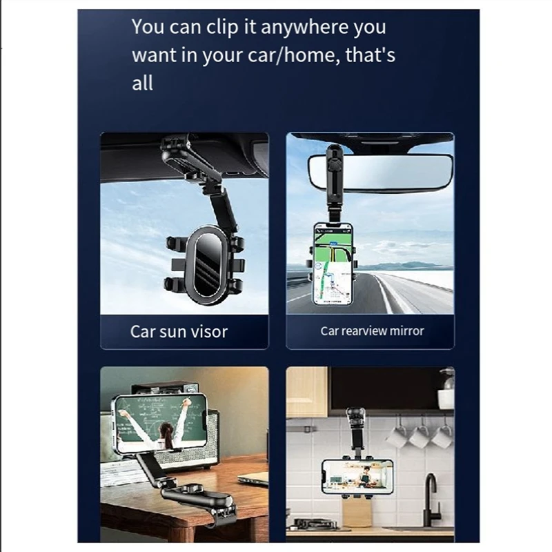 [Soporte para teléfono con parasol para coche] Soporte para teléfono móvil multifunción, se puede colocar en el espejo retrovisor, se puede colocar en el parasol del coche, también se puede utilizar como soporte para teléfono móvil en casa.
