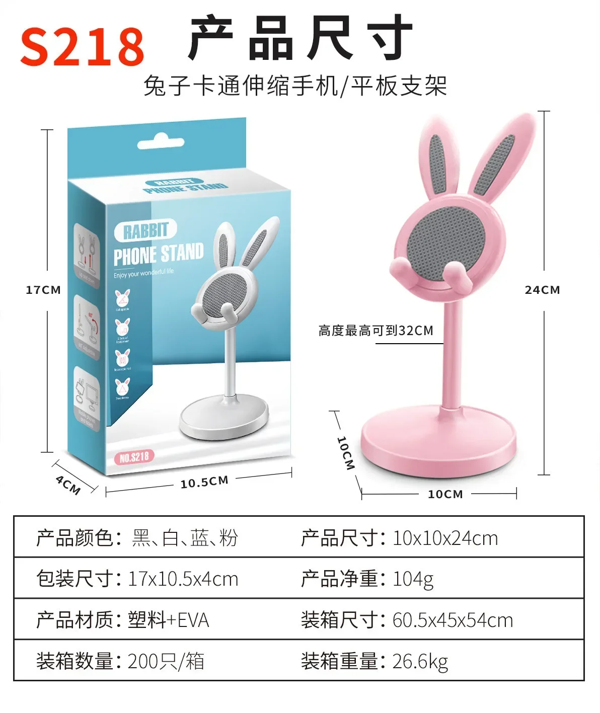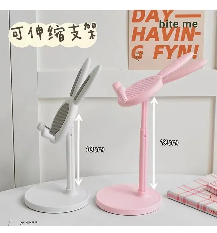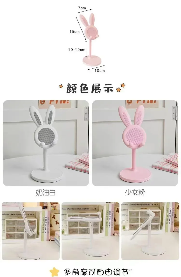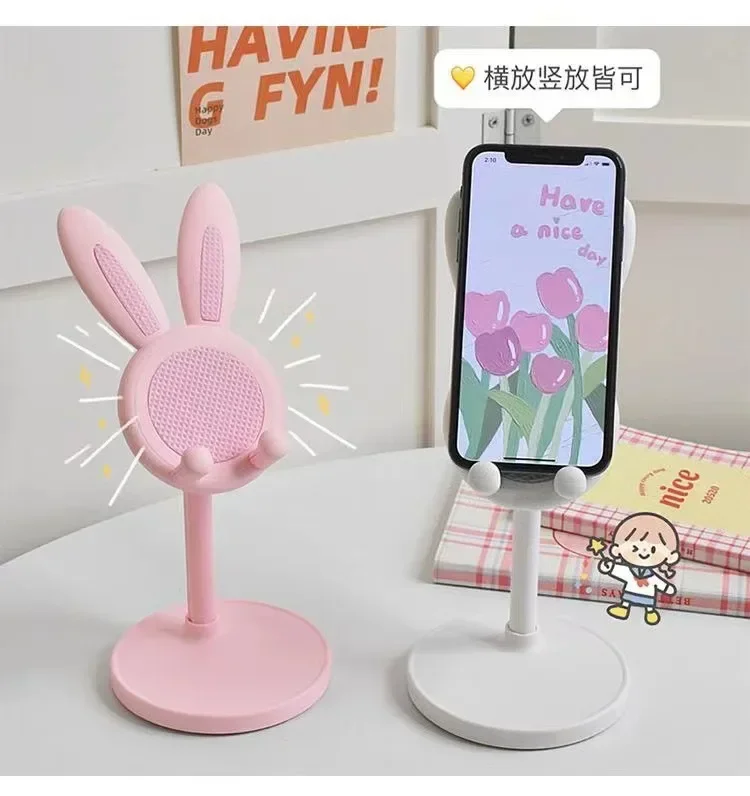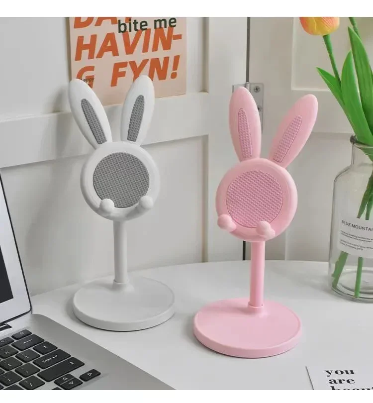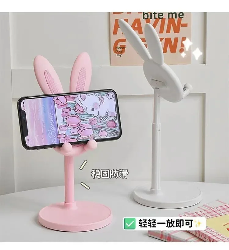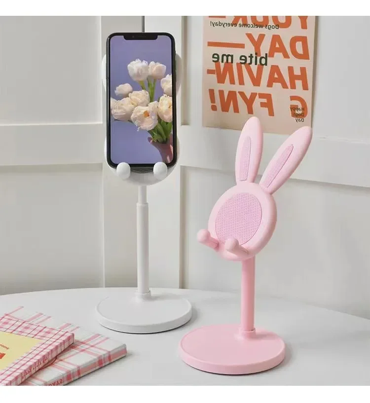 Comprar Soporte de teléfono móvil de escritorio para iPhone 13 14 Samsung, soporte de teléfono inteligente ajustable, piezas de dibujos animados de conejo encantador, Rosa