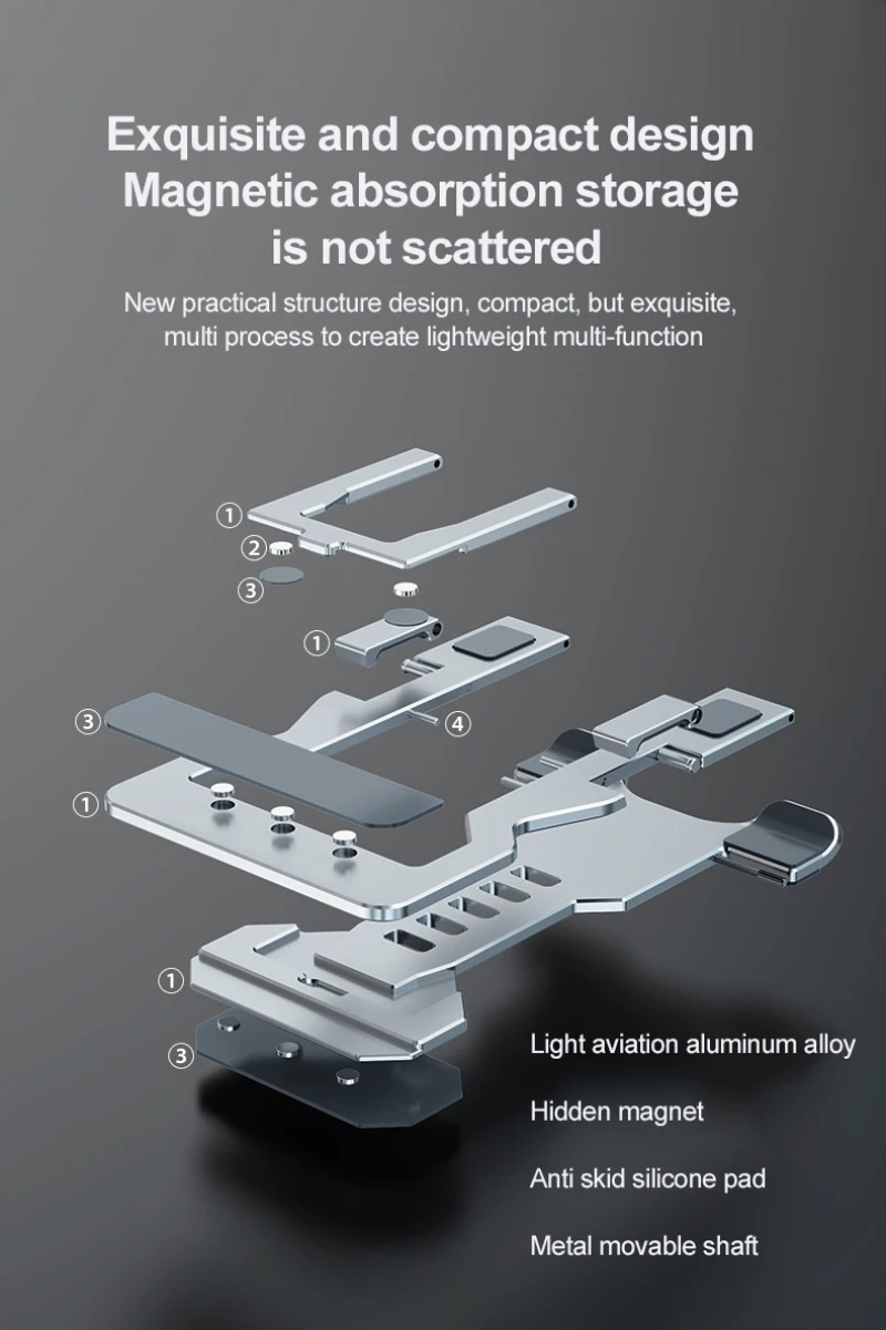 Nombre del producto: soporte plano para teléfono móvil de doble propósito Color: plata/gris oscuro