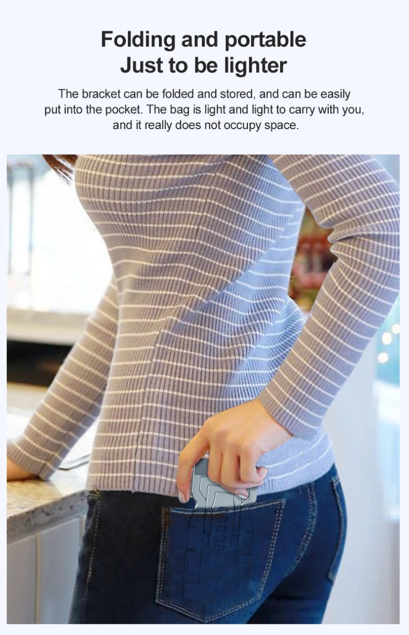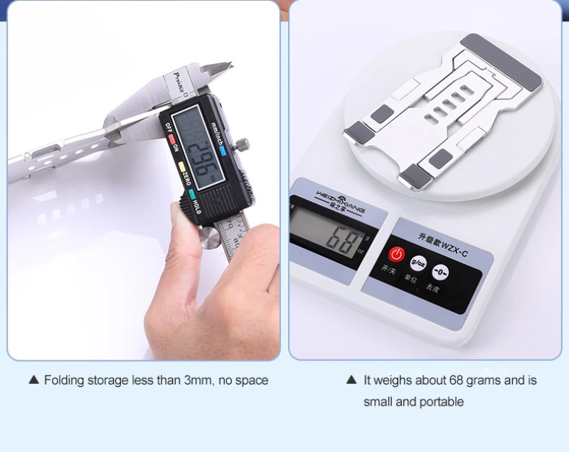 Tamaño del soporte: estado plegado 70*131*2,9mm, estado desplegado 70*123*105mm