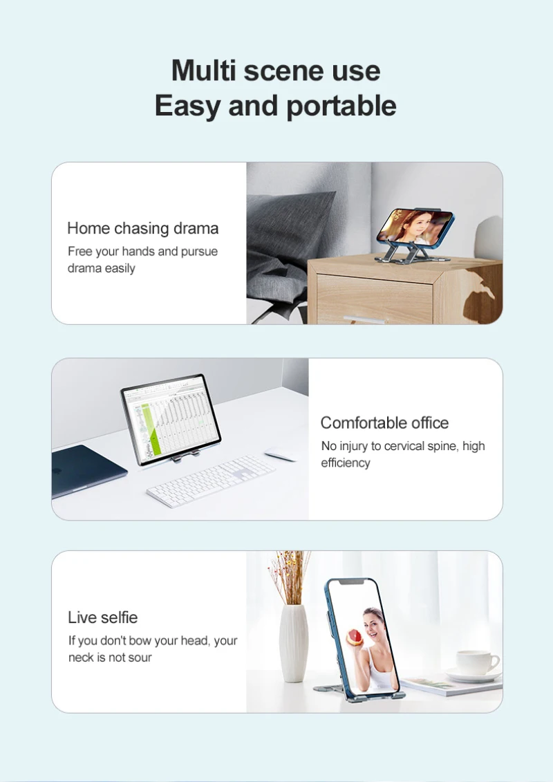 Función principal Teléfono móvil/tableta pequeña soporte de escritorio para clase en línea, videoconferencia, drama, transmisión en vivo, etc.