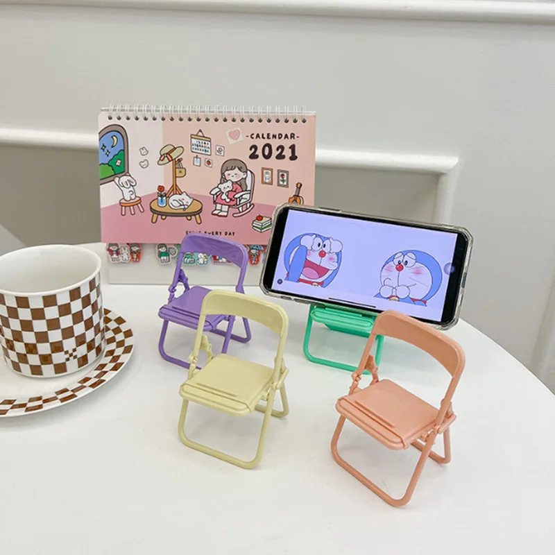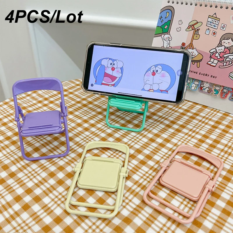 Comprar Soporte de teléfono móvil con forma de Mini silla, taburete plegable ajustable, portátil, colorido, 4 piezas