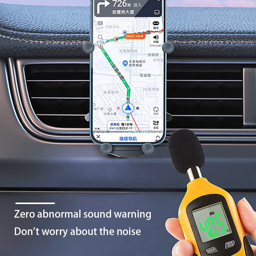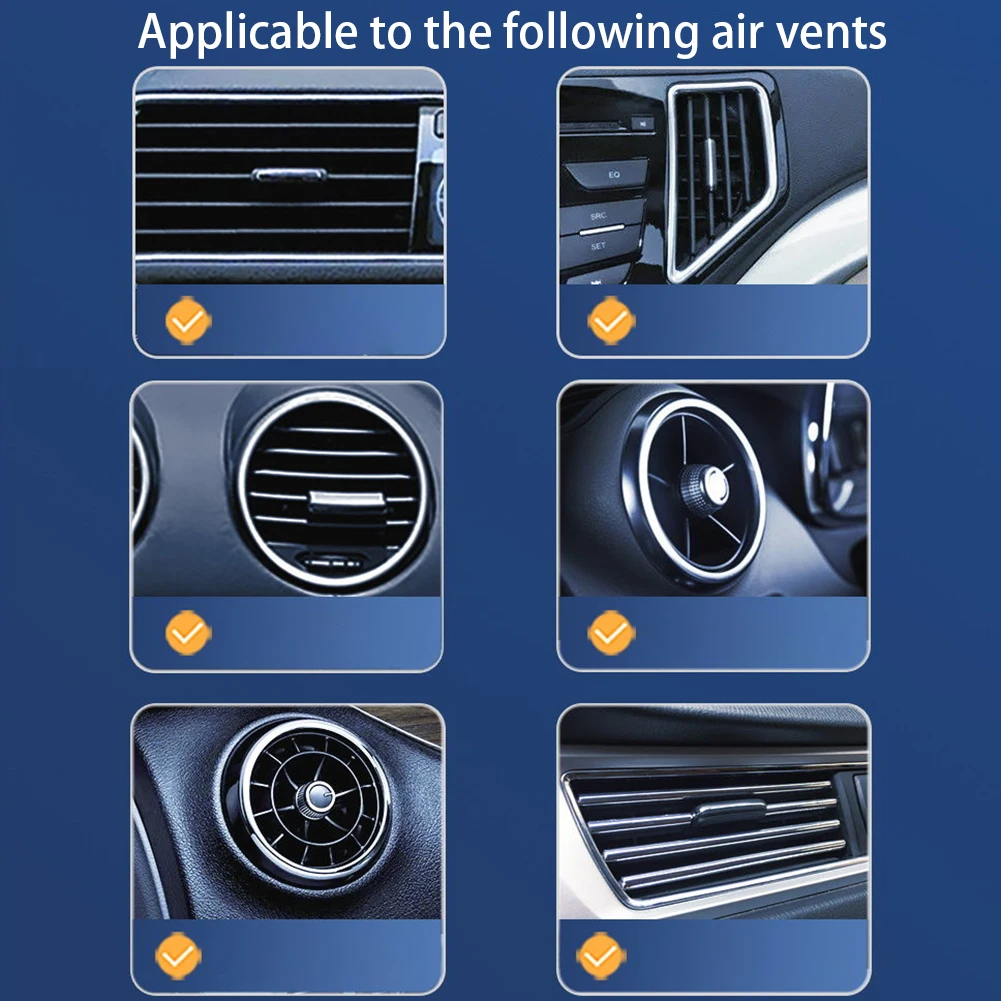 4. Diseño invisible:Este soporte de gravedad para el salpicadero le permite conectar su teléfono inteligente a la rejilla de ventilación y girarlo según sea necesario mientras permanece discreto y sin obstrucciones. No bloqueará los botones ni obstaculizará su línea de visión, lo que le permite cargar su teléfono y navegar de forma segura.