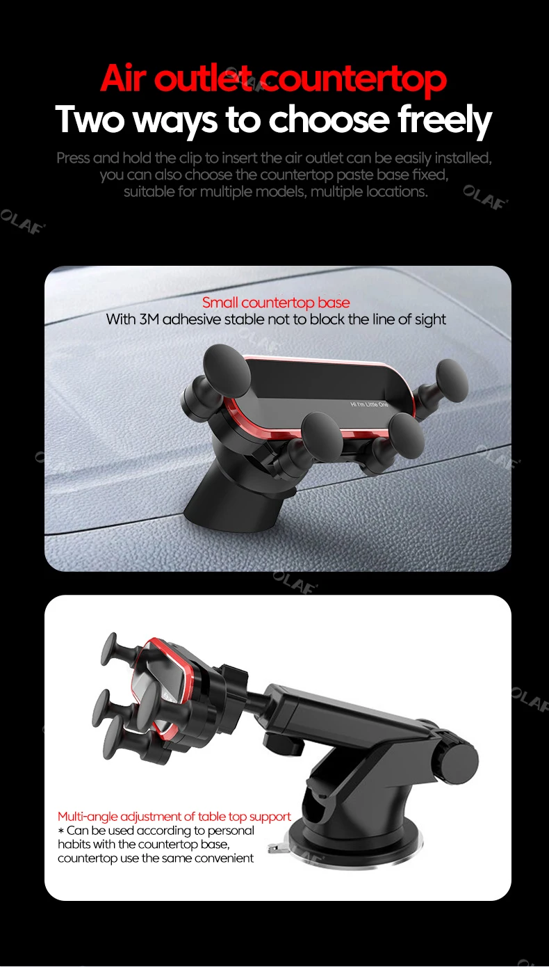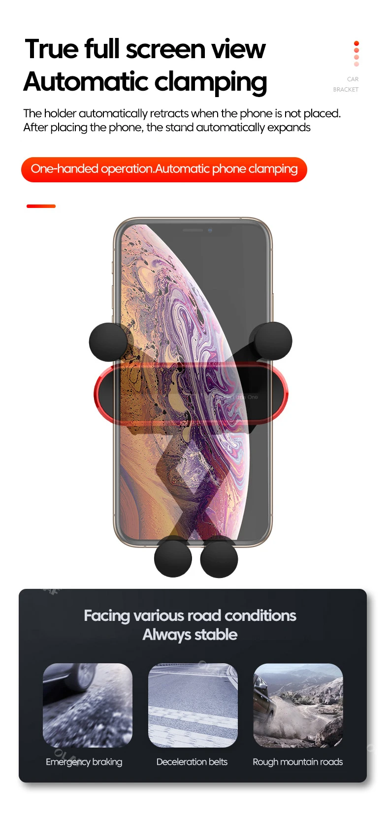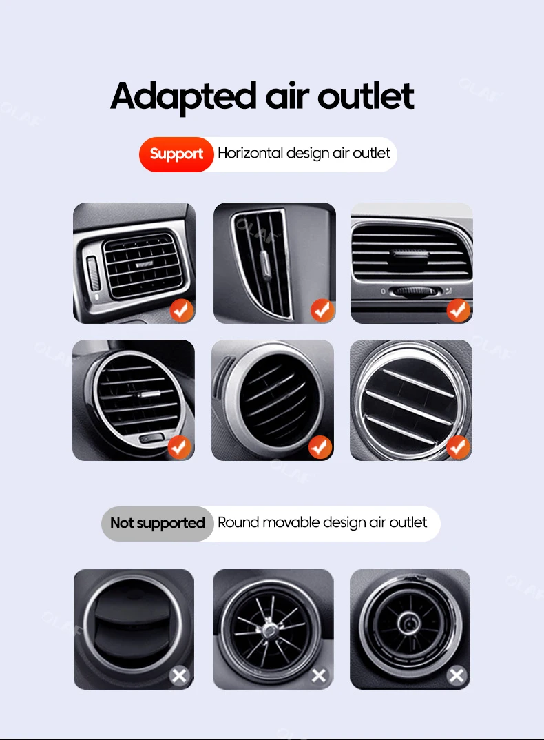 El diseño de base curvada fija y estable se sujeta a la mayoría de las rejillas de ventilación del coche.