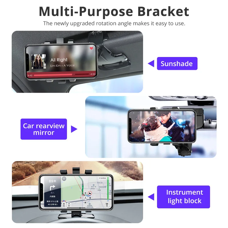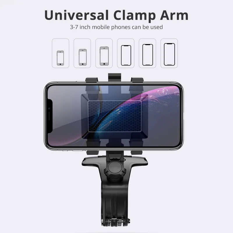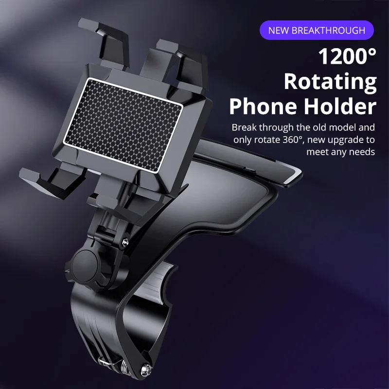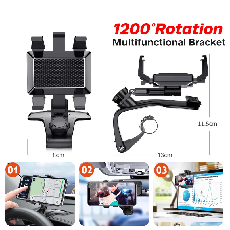 Comprar Soporte de teléfono móvil mejorado para salpicadero de coche, 1200 grados, espejo retrovisor, visera solar, soporte de navegación GPS