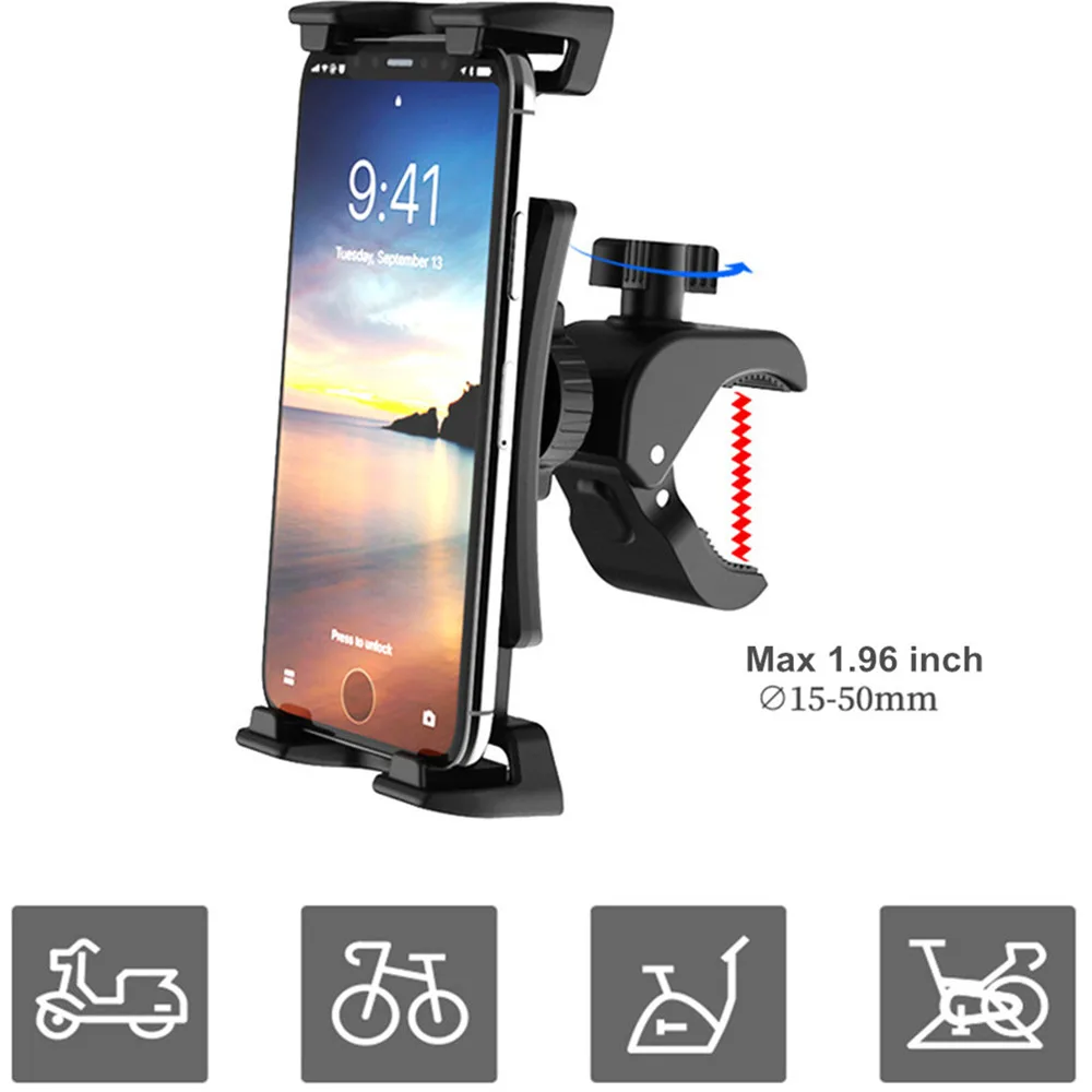 Soporte de teléfono móvil para motocicleta y bicicleta, abrazadera para manillar de bicicleta, soporte para tableta de 4,7-13 pulgadas, rotación de 360 °