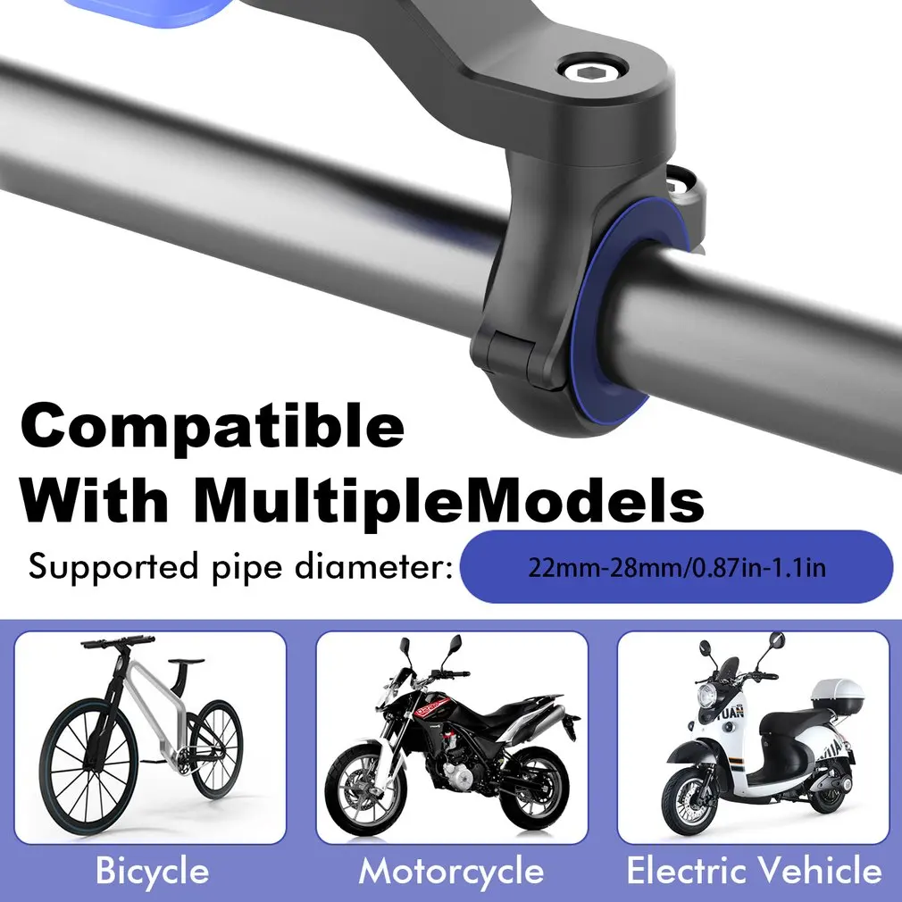 3 modelo multifunción: el diámetro de la tubería de soporte de este soporte para teléfono móvil es de 22,2 ~ 28,6mm, que se puede adaptar a bicicletas normales, vehículos eléctricos, etc. Con una función de rotación, es conveniente ajustar el ángulo de visión según sus necesidades. Hecho de material ABS de alta calidad, ligero y duradero.