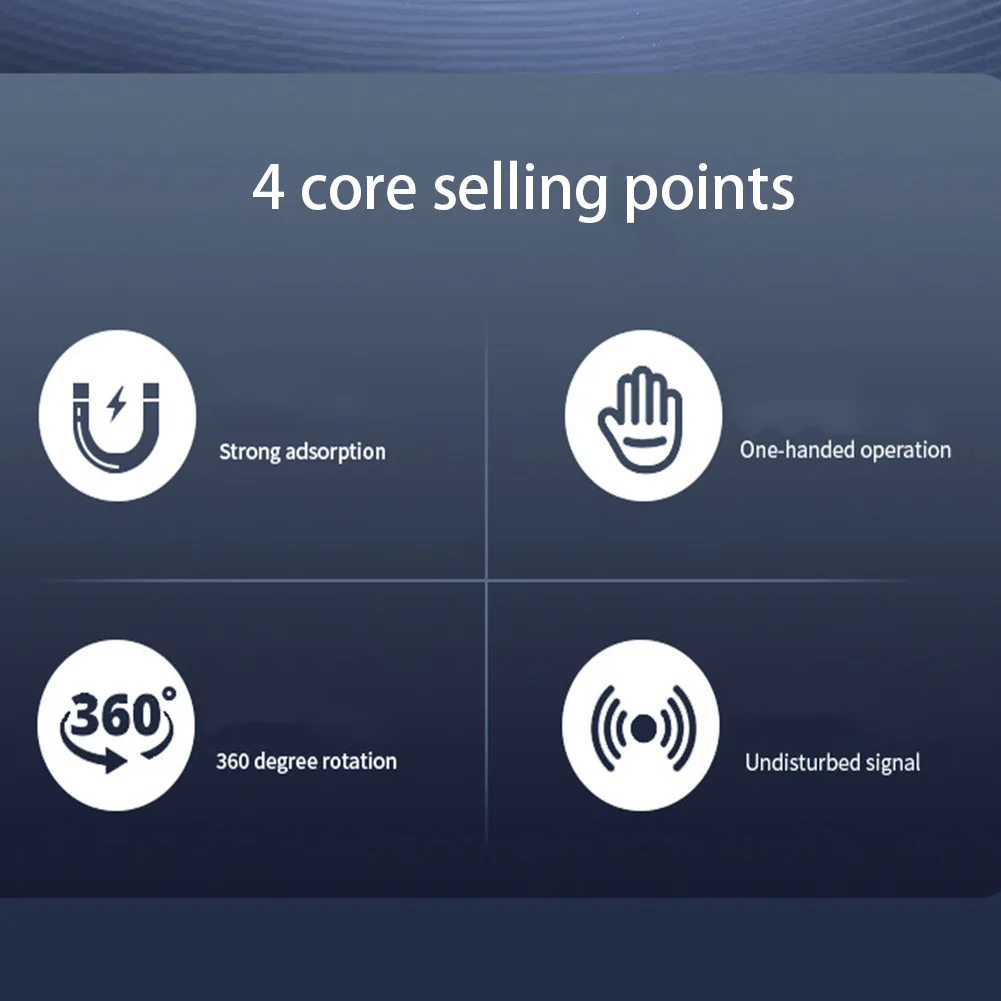 1.Fuerza magnética superior:Nuestro soporte magnético para automóvil cuenta con un panel metálico circular equipado con 32 imanes de neodimio N52, que brindan la mayor fuerza magnética de la industria para mantener su dispositivo en su lugar de forma segura.