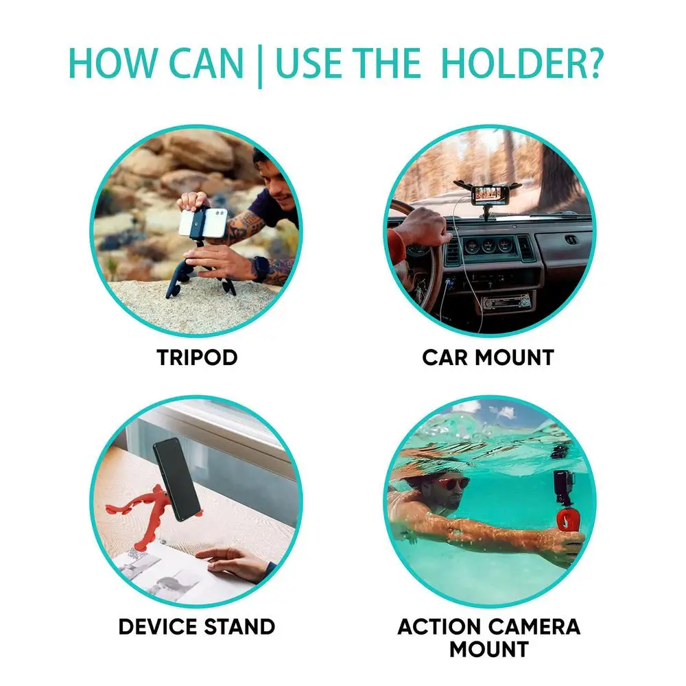 2. Uso duradero: nuestro soporte para teléfono Octopus está hecho de material resistente y de alta calidad que proporciona un agarre confiable.Con goma que no se rompe ni se desgasta fácilmente, garantiza un uso duradero sin ningún daño.