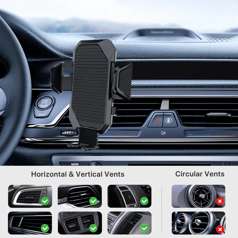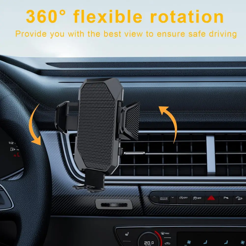 Soporte para teléfono con una sola mano, soporte retráctil para teléfono de coche con montaje de hoja de ventilación antivibración de 360 grados para automóvil