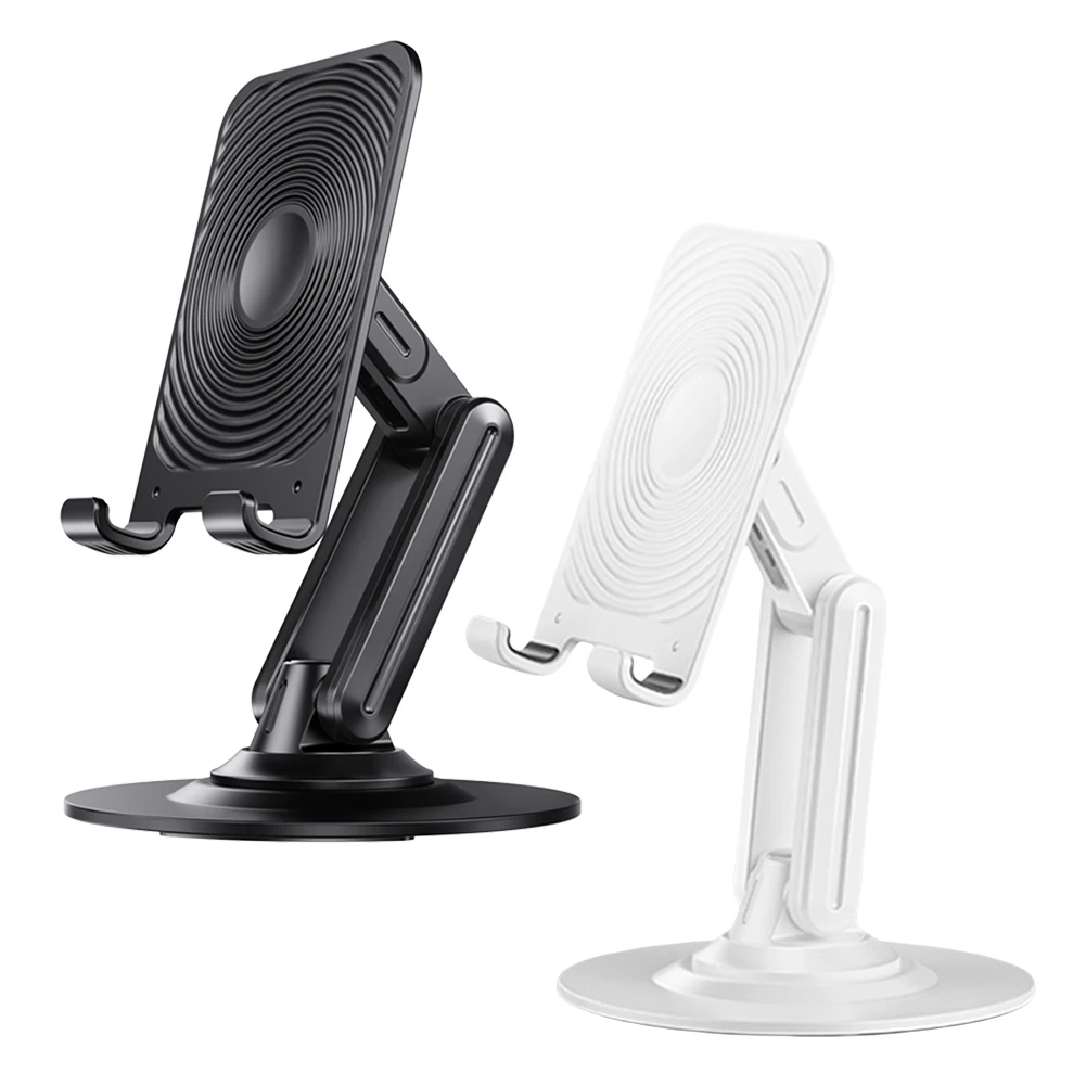 2.Base giratoria de 360 grados:Equipado con una base completamente giratoria, este soporte para teléfono celular de escritorio le permite ajustar sin esfuerzo el ángulo de visión a su gusto, brindando una experiencia de manos libres para ver videos, videollamadas o compartir pantalla con facilidad.