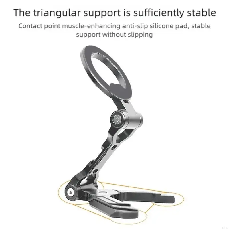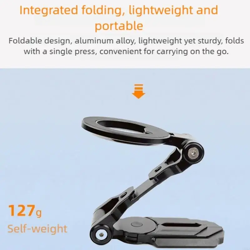 Fabricado con una aleación de aluminio pero resistente, este soporte plegable para teléfono cuenta con un mecanismo de plegado de una sola presión y ángulos ajustables de 360 grados para posiciones de visualización versátiles.