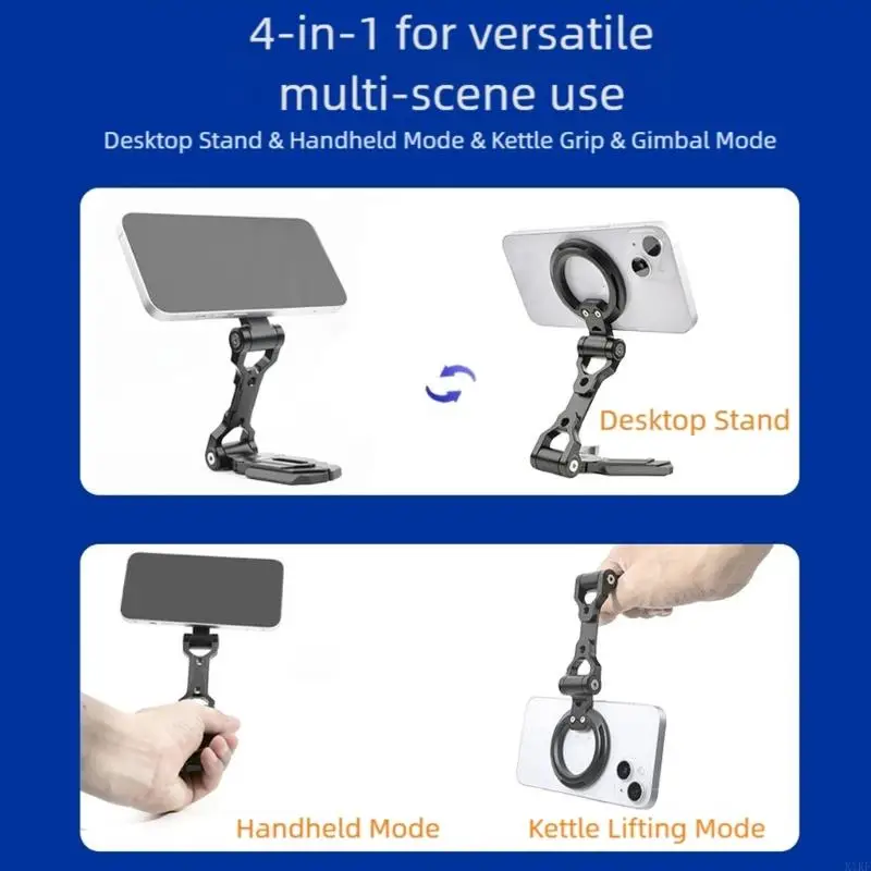 La compatibilidad se adapta a teléfonos inteligentes de todos los tamaños, combinando estabilidad con portabilidad plegable en un elegante soporte metálico para teléfono para realizar múltiples tareas diarias.