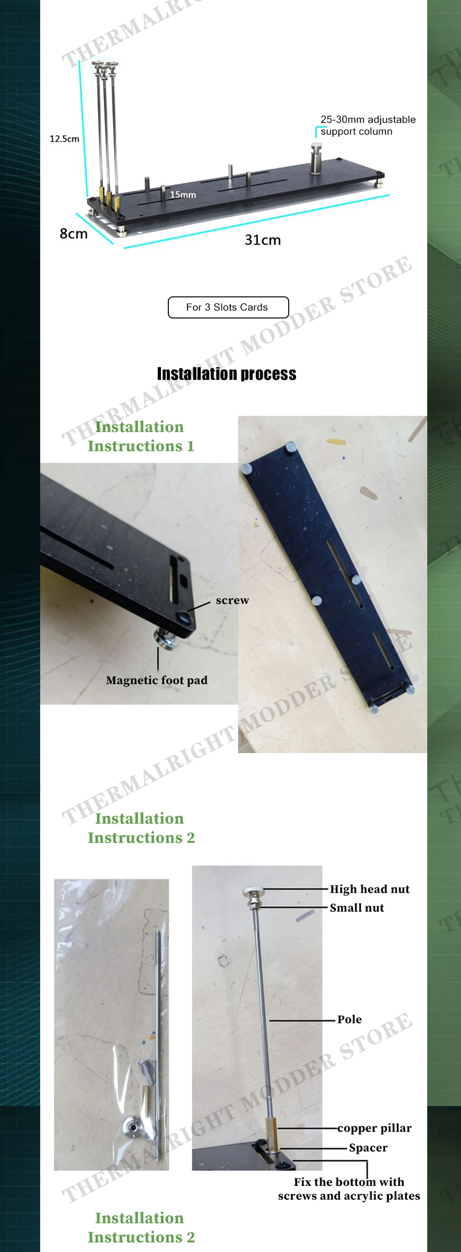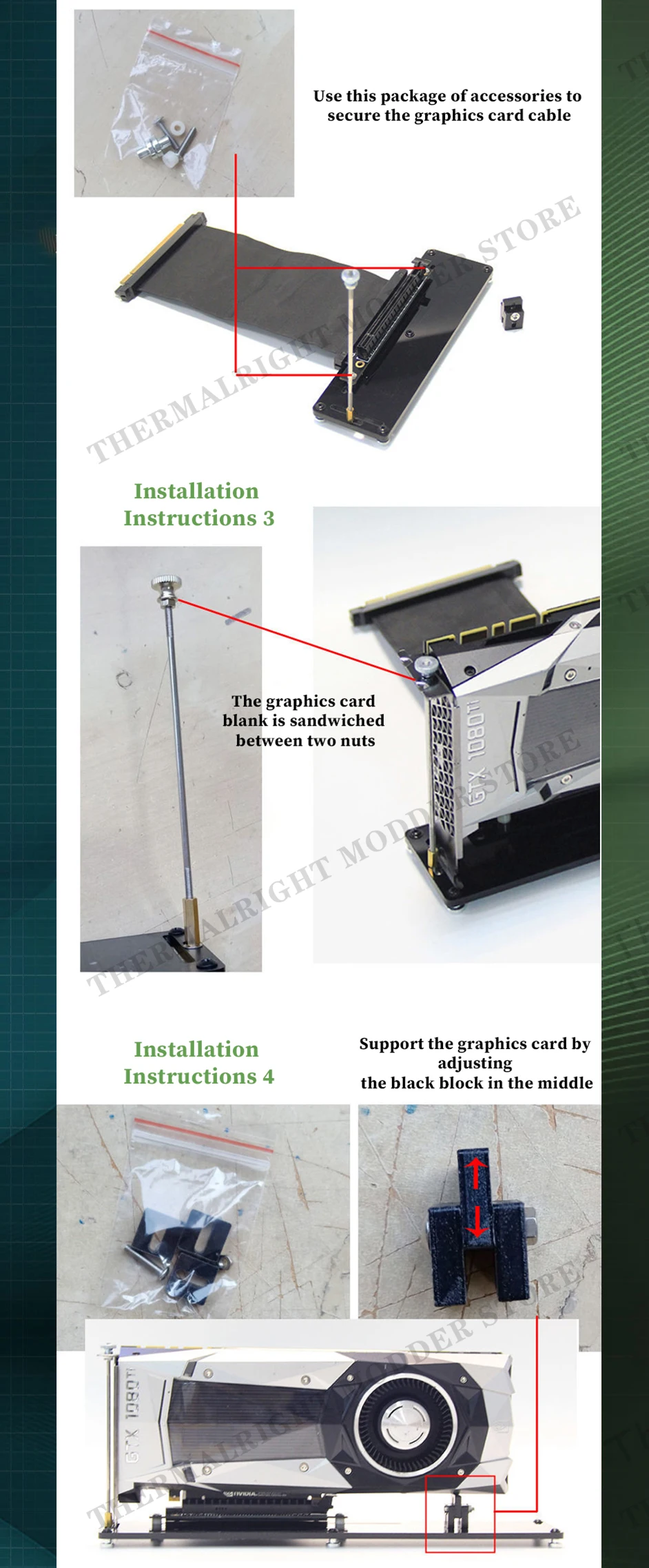 Soporte de transferencia GPU PCIe, tarjeta de vídeo, soporte de montaje Vertical, extensión gráfica de 2 y 3 ranuras